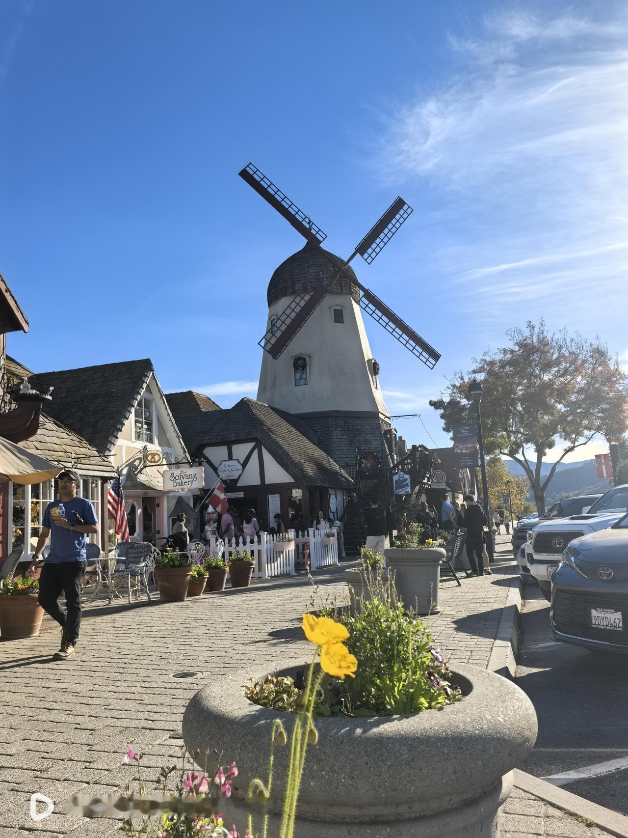 加州丹麦童话小镇,让人瞬间穿越到北欧 我们今天从福斯特城出发,沿101高速一路向南,前往洛杉矶,路过丹麦童话小镇(Solvang),这是一个是个具有北欧风情的独特小镇。据说它是丹麦移民于1911年建立的,小镇清一色丹麦风格建筑。 我们沿着小镇漫步,打卡了大风车、小美人鱼雕像等标志性建筑,参观了安徒生博物馆。小镇不大,却别具特色,特别适合休息打卡。 我们在这里休息了2个多小时,便继续前往今天的目的地---圣塔芭芭拉(Santa Barbara)。