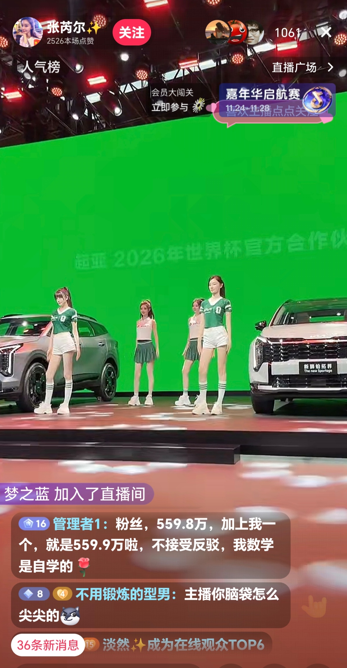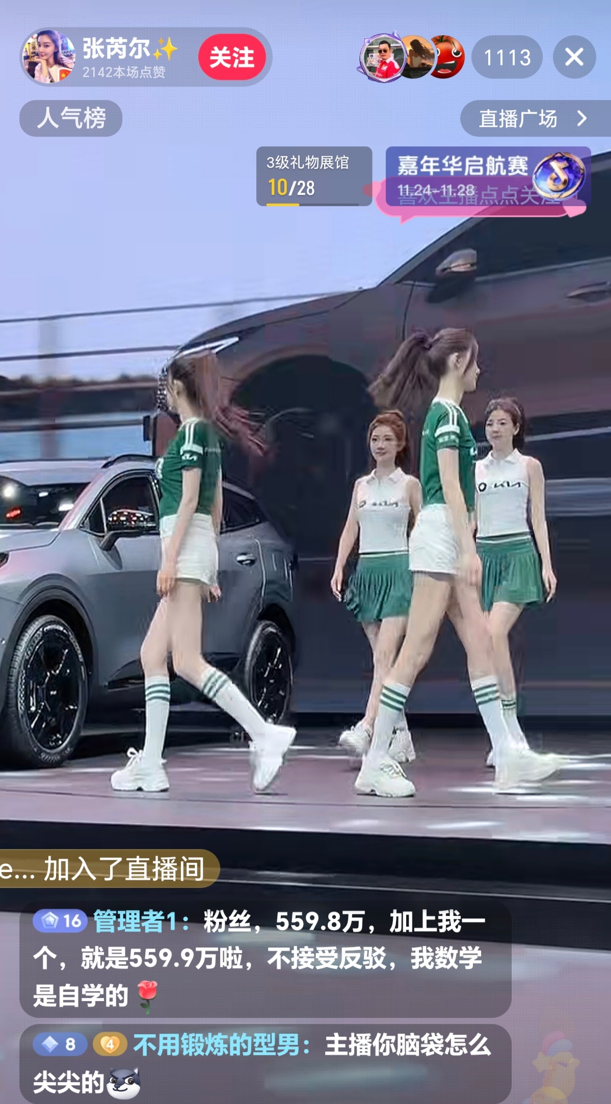 刚在上刷直播,恰恰看到著名模特张芮尔在做车展直播,看了下她的粉丝,竟然有559.8万,也太牛逼了吧,就毅然而然地做了她的粉丝,那么,她就有559.9万粉丝了,然而,再一看,她的粉丝竟然还是559.8万,是我算错了吗?我的数学是自学的,考试从来没不及格过,