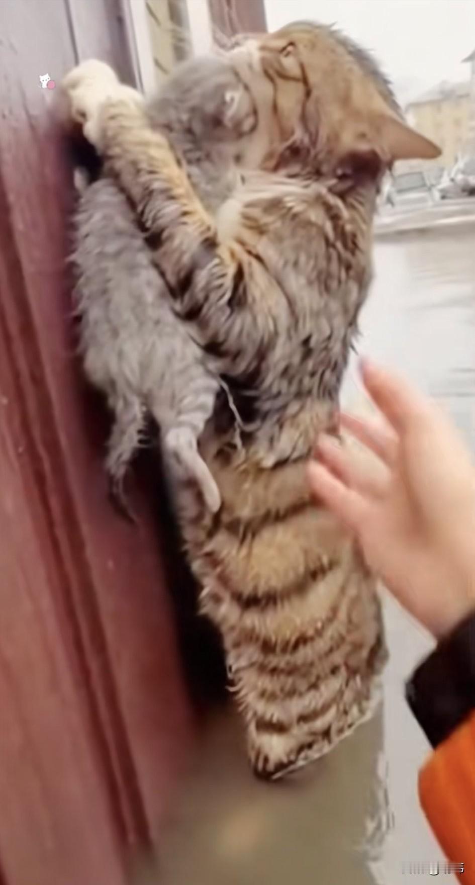 泪目了!因为洪水,一只猫妈妈的家被淹没了,它拼尽全力才救出自己的孩子,然后它叼着孩子,奋力地抓住一扇门的门把手,就这样悬在那里不让自己和孩子被水淹没。 可时间一长,它就非常吃力,眼看就要滑落,发生悲剧,这时候一位爱心救援队的小姐姐和同事驾驶搜救艇路过这里,发现了可怜的它们,马上靠近过去,小姐姐轻轻地把猫妈妈和孩子抱上了船,就这样救了它们,之后小姐姐还收养了这两只可怜的猫咪,相信在她的照顾下猫咪母子也会越来越好的。