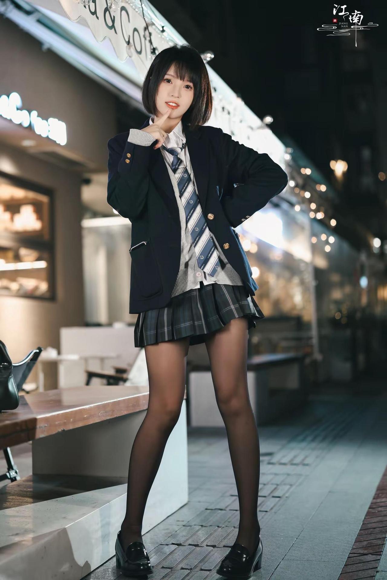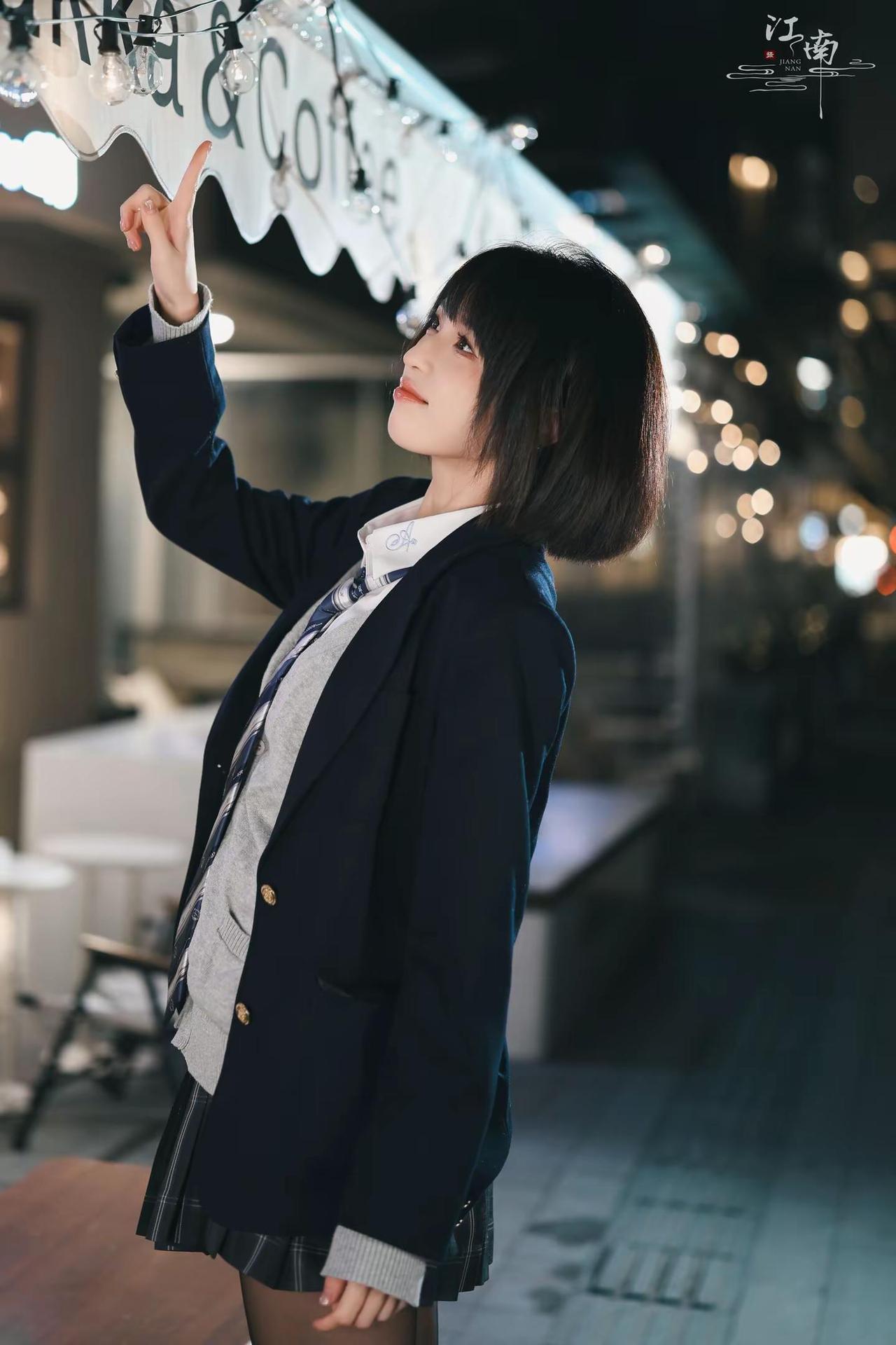 大学路夜景。学院风穿搭 日系写真 摄影日常 jk