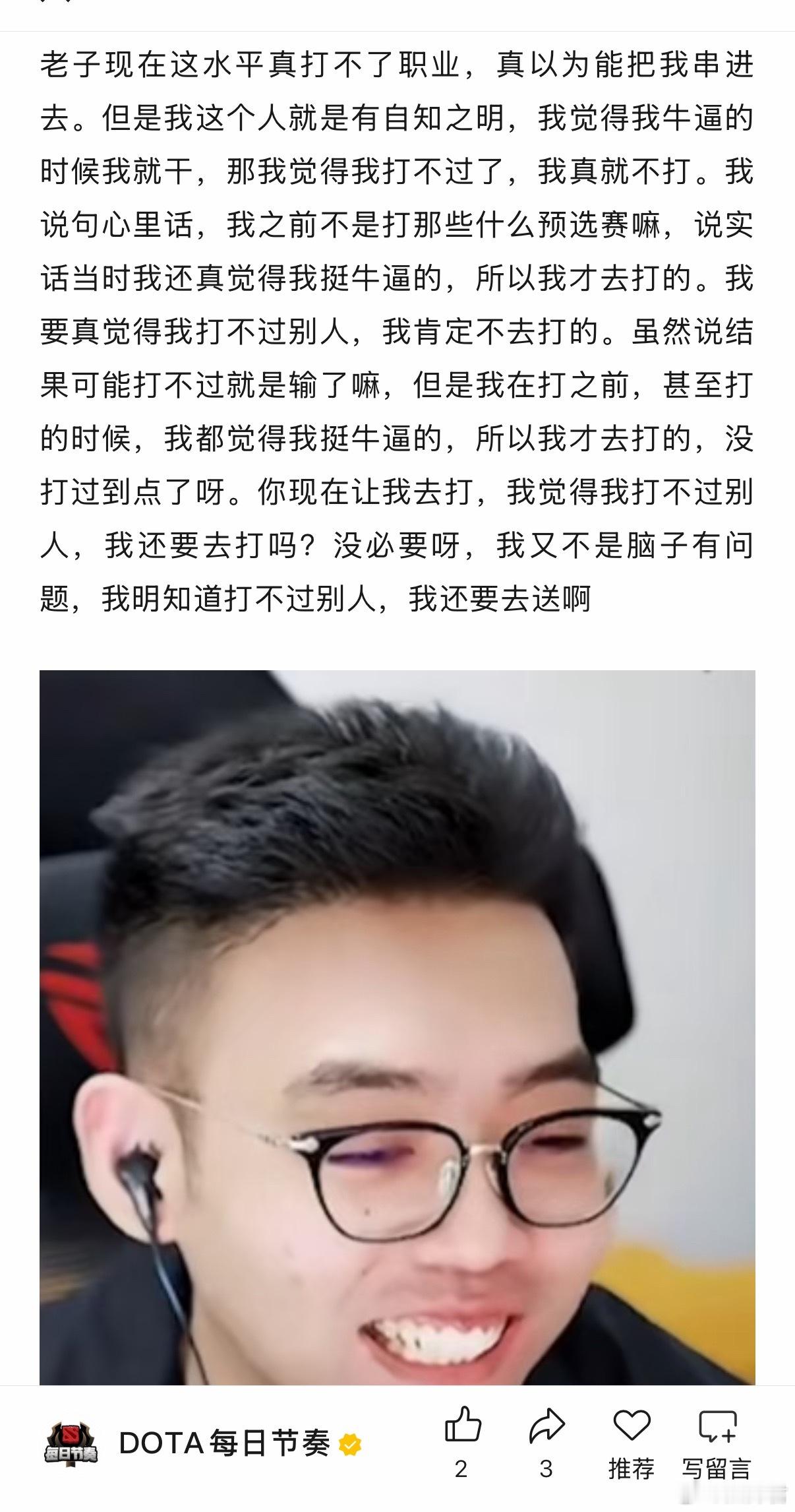 这两天莫言状态很差,弹幕又让超哥复出,超哥说等春暖花开时再说吧,现在大冬天的提不起精神dota2