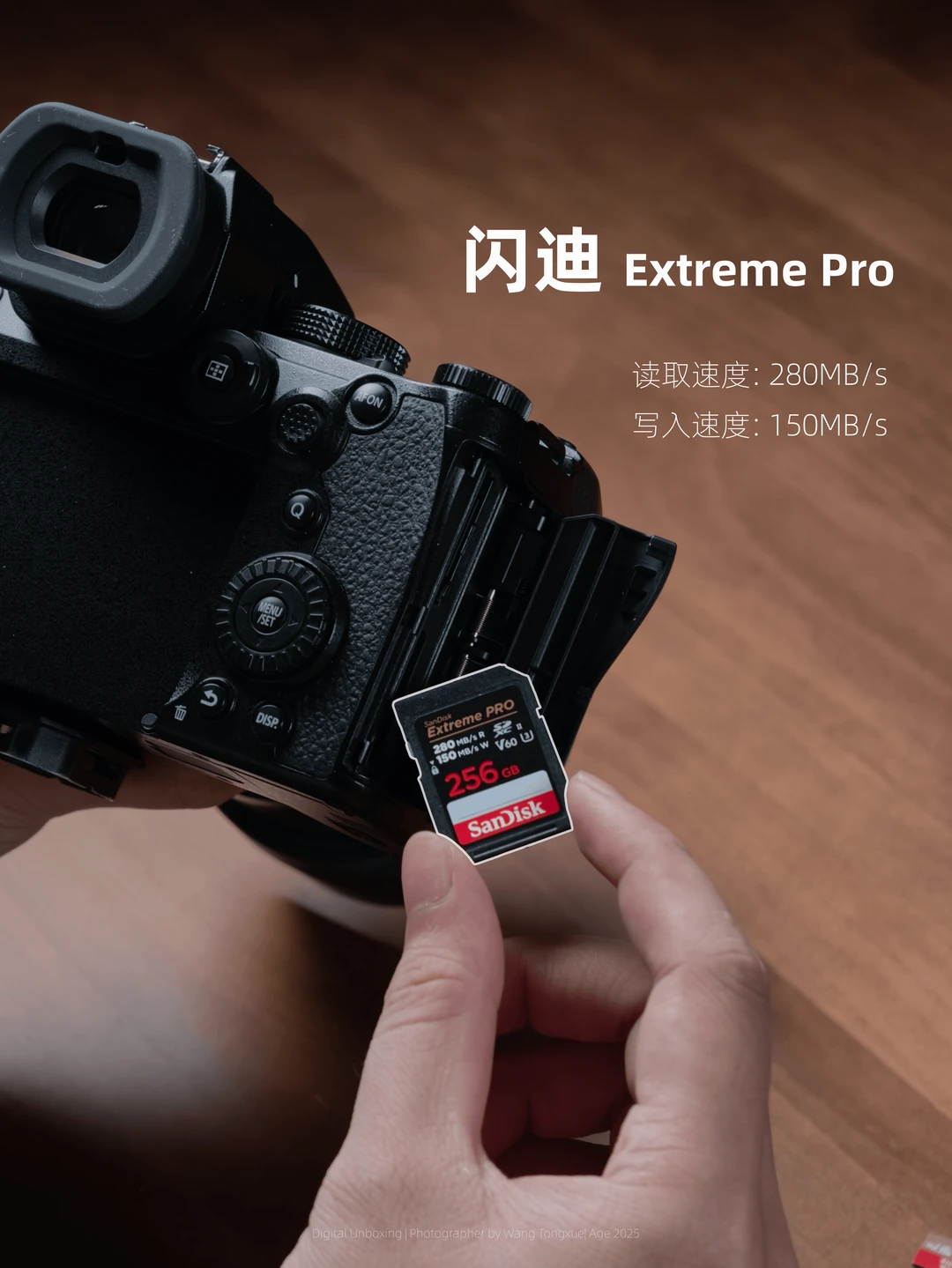 这里要特别注意一下内存卡,优选大品牌更有保障,不然丢素材真的会崩溃!我拍摄设备用的都是闪迪家的 ,作为行业标杆采用原厂闪存芯片,经72小时极端环境测试,能避免长时间录制因机器升温丢素材,稳如老狗!