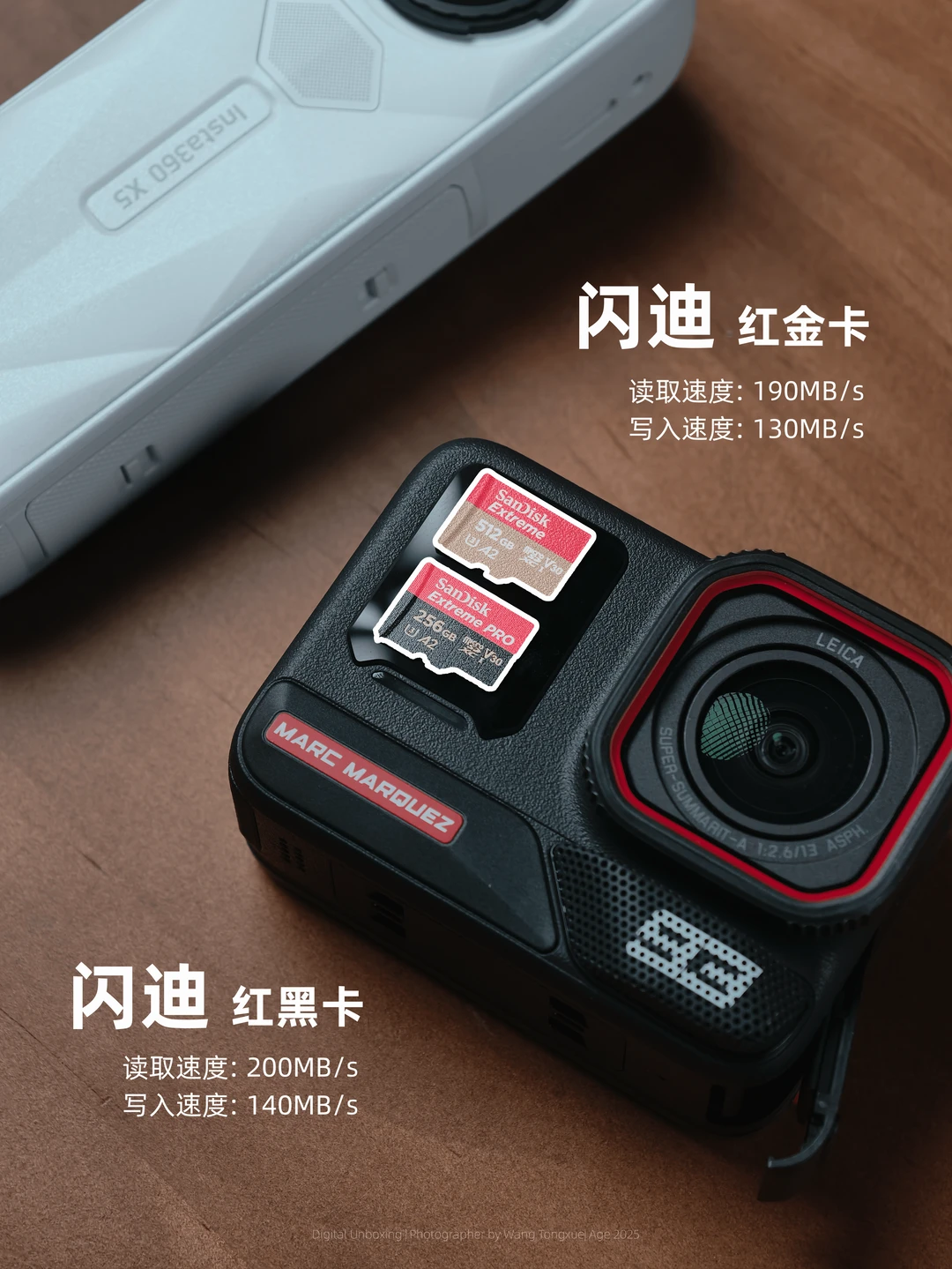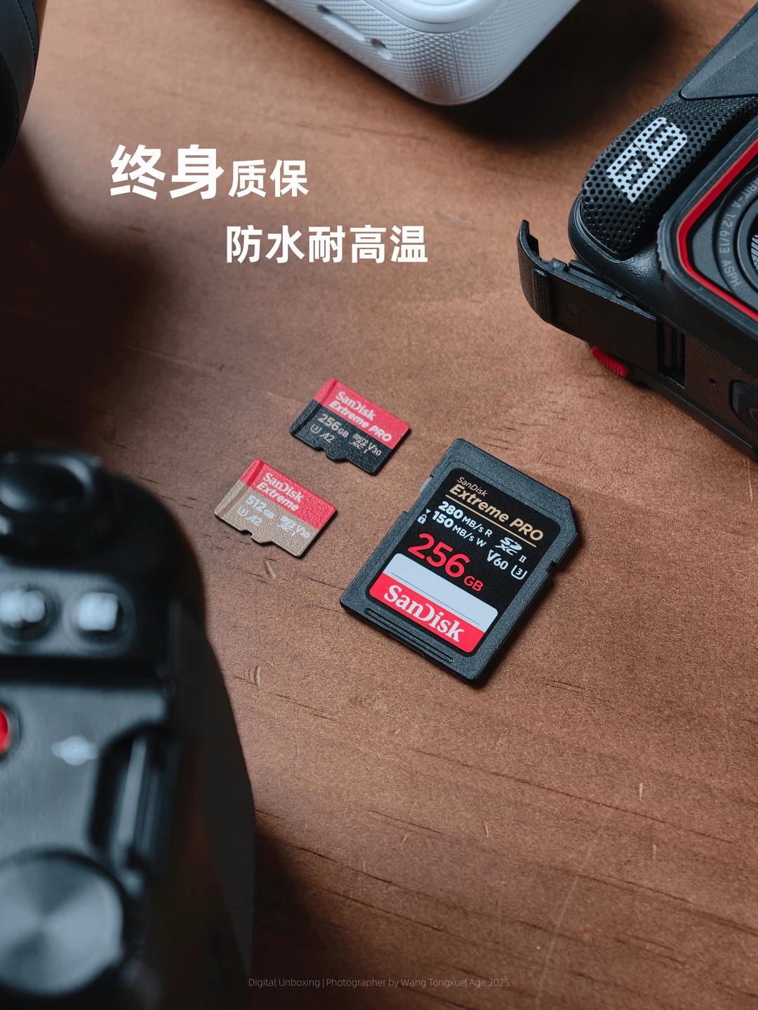 运动、全景相机,用的是闪迪极速红金卡和超极速红黑卡:512G大容量能无顾虑长时间拍 4K 60帧视频,如今两款已出 2TB版本,高帧率视频也能随意拍,彻底告别容量焦虑;日常场景选红金卡即可,若拍全景或全景运动更推荐速度等级更高的红黑卡, 高速写入能避免画面掉帧、卡顿;两款均有军工级耐用性(防水、防震等),适配户外极端场景,还能通用无人机、游戏机等设备,是存储性能与多场景适配兼具的优质选择。