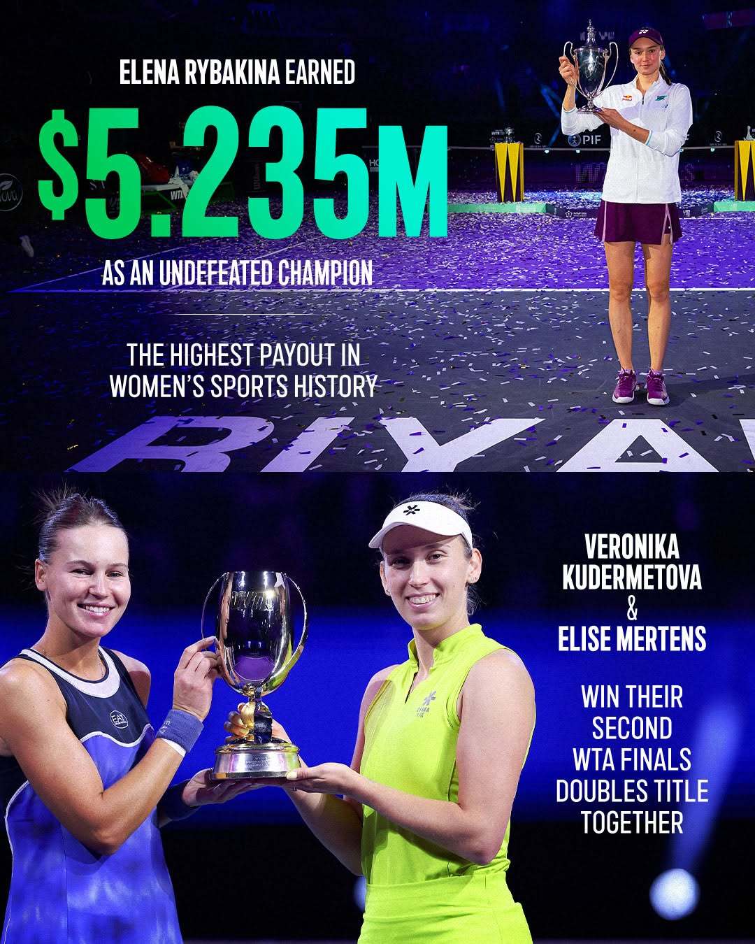 上座率提升📈冠军奖金创纪录💰慈善公益活动继续💚数据回顾利雅得WTA年终总决赛 🙌