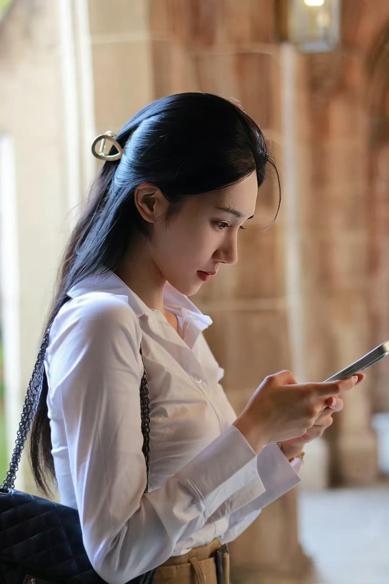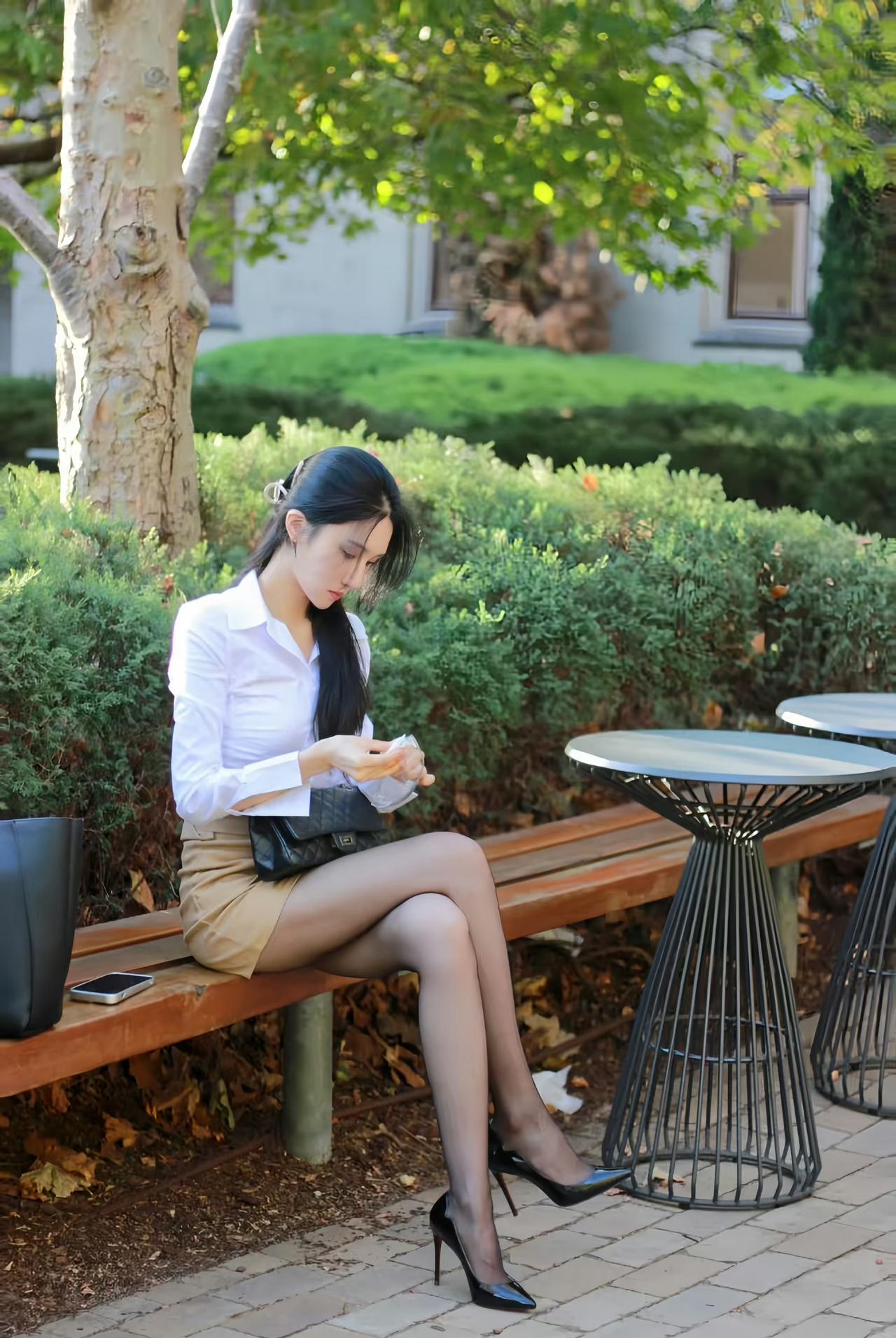 白色衬衫简约干练,经典的版型为整体注入了职场的专业气质;卡其色高腰短裙设计精致,腰带与纽扣元素增添了复古感,收腰版型凸显身材曲线,为造型注入了轻熟时尚的韵味。 搭配黑色尖头高跟鞋精致又具气场,提升了整体的精致度;黑色菱格纹链条包经典实用,为整体造型增色不少。充分展现穿着者职场干练又不失轻熟的独特魅力。风格知性又具女人味。白色职场穿搭 职场女神衬衫