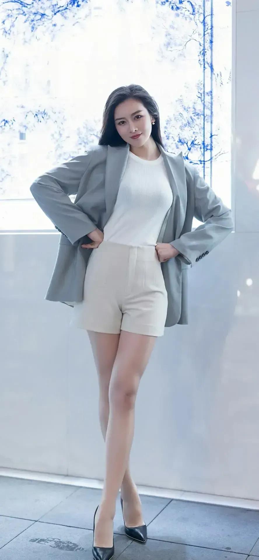 这套穿搭将职场干练与轻熟时尚巧妙融合,风格简约又具高级感。浅灰色西装外套版型利落,宽松的剪裁营造出随性的职场气场,与内搭的白色修身针织衫形成层次搭配,为整体造型注入了干练的气质;白色针织衫简约修身,凸显出曼妙身形,为造型增添了一丝柔和感。 米白色短裤简约清爽,展现出修长的腿部线条,与整体风格相呼应;黑色尖头高跟鞋经典又具精致感,为造型注入了轻熟时尚的韵味,提升了整体的高级度。灰色西装穿搭 职场穿搭 灰色系职场穿搭 上班通勤应该怎么穿才有气质?