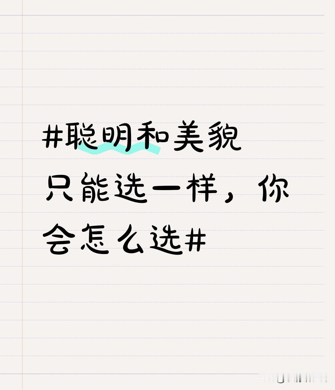 要是聪明和美貌只能选一样,我铁定选聪明。年轻时觉得美貌是通行证,面试、社交都吃香。但美貌有保质期,岁月会让颜值打折。 聪明就不一样了,它是张长期饭票。有清醒认知、解决问题的能力,遇到难题能破局,走弯路能止损。见过靠美貌出圈却摔跟头的,也见过相貌普通靠聪明稳步前行的。 而且,聪明还能带来另一种美。会管理情绪更温柔,会管理时间更从容。美貌会消失,聪明带来的气质却能沉淀。选聪明,就是选长久安稳,靠自己的实力站稳脚跟。
