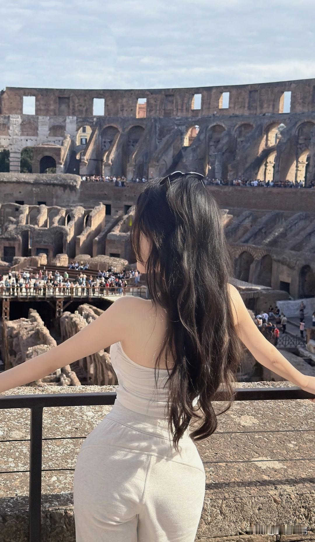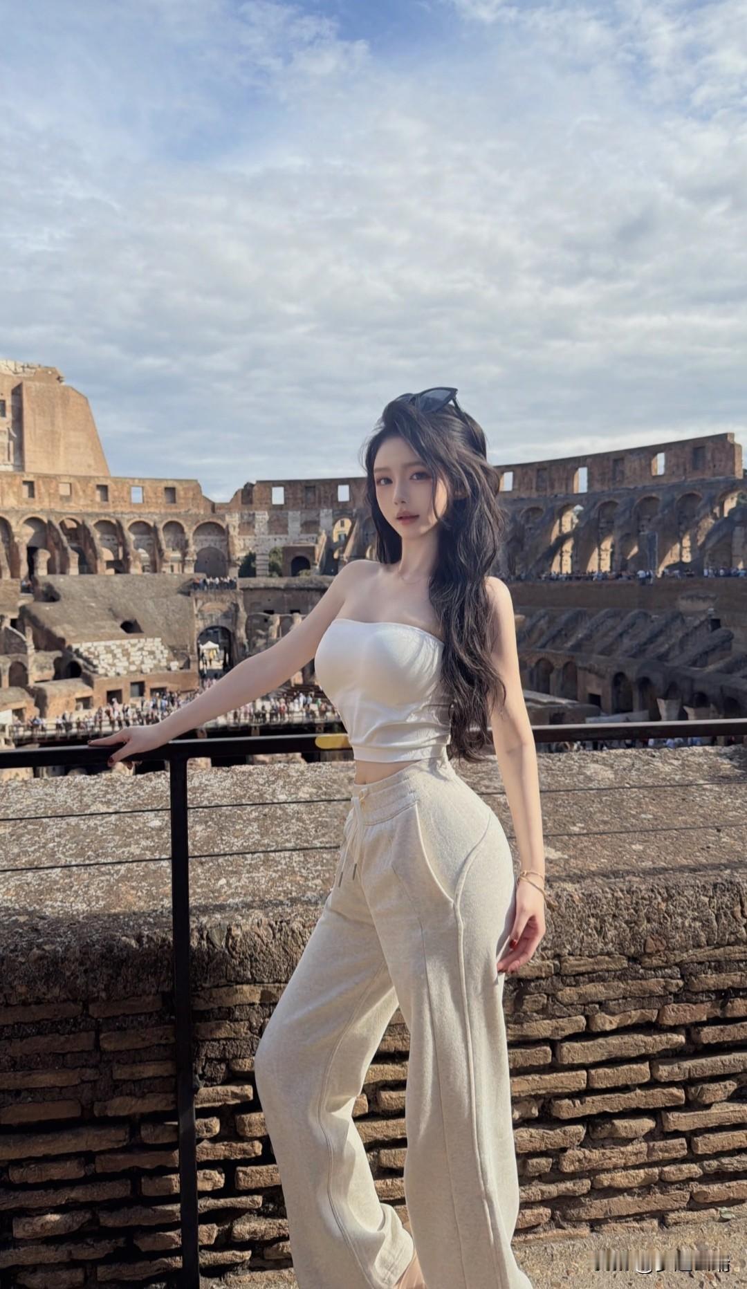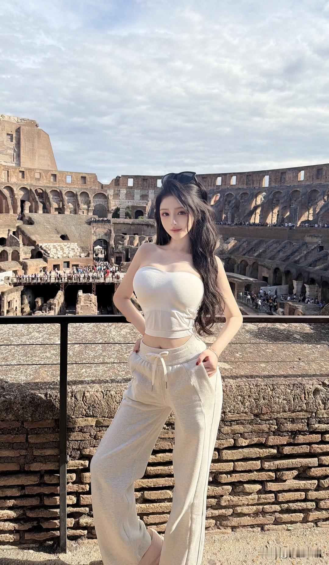 罗马斗兽场前的少女,复古与现代的碰撞。