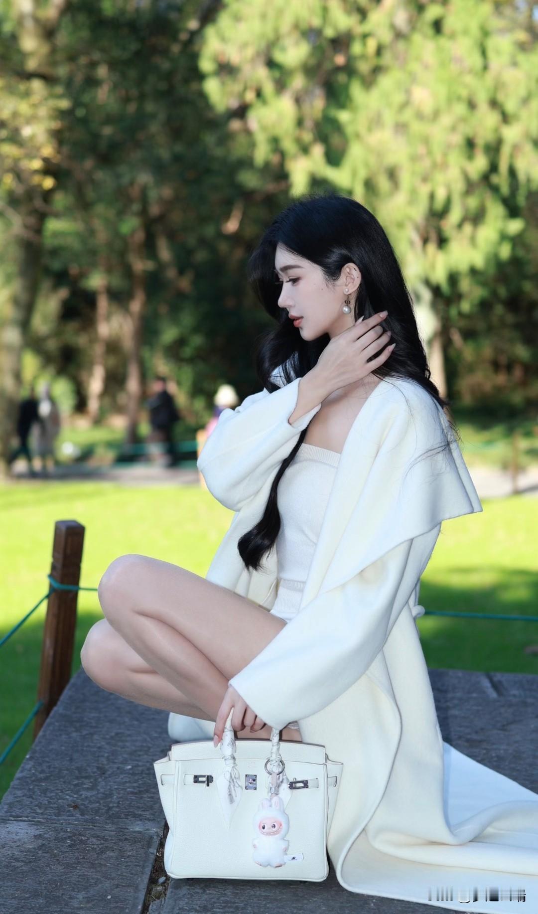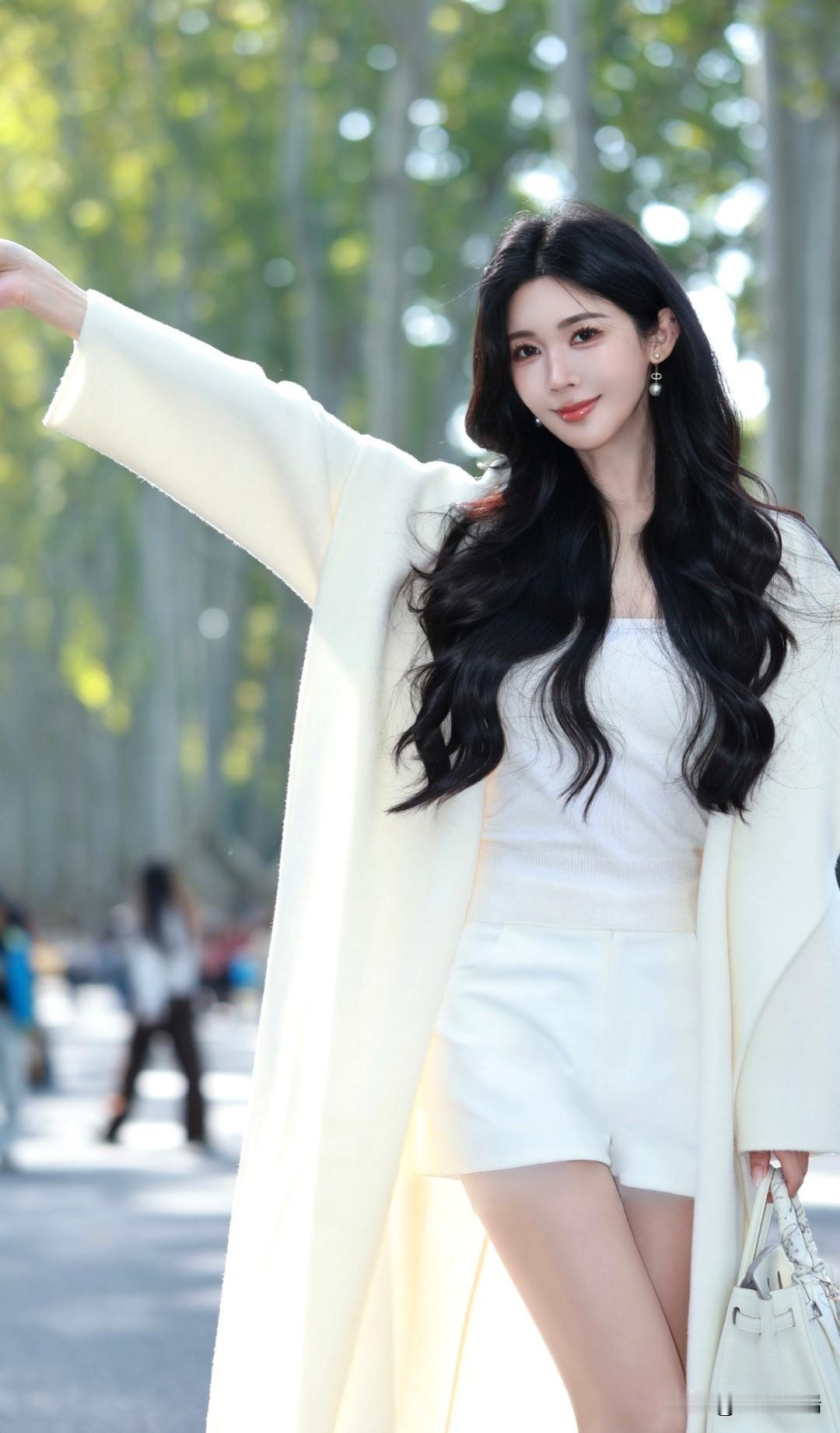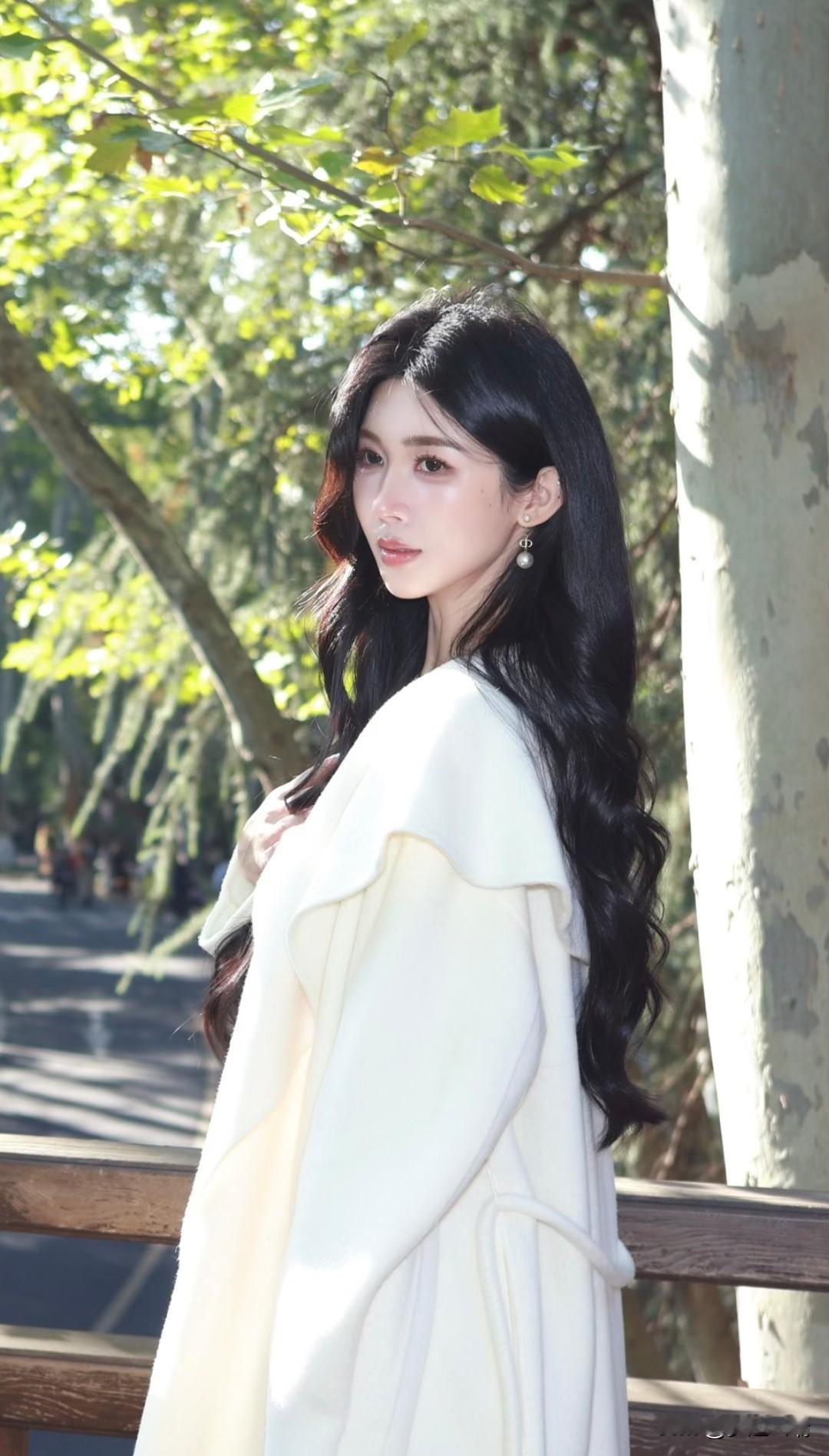 夏日清新,绿意盎然,优雅黑发,白裙飘逸,静享时光。