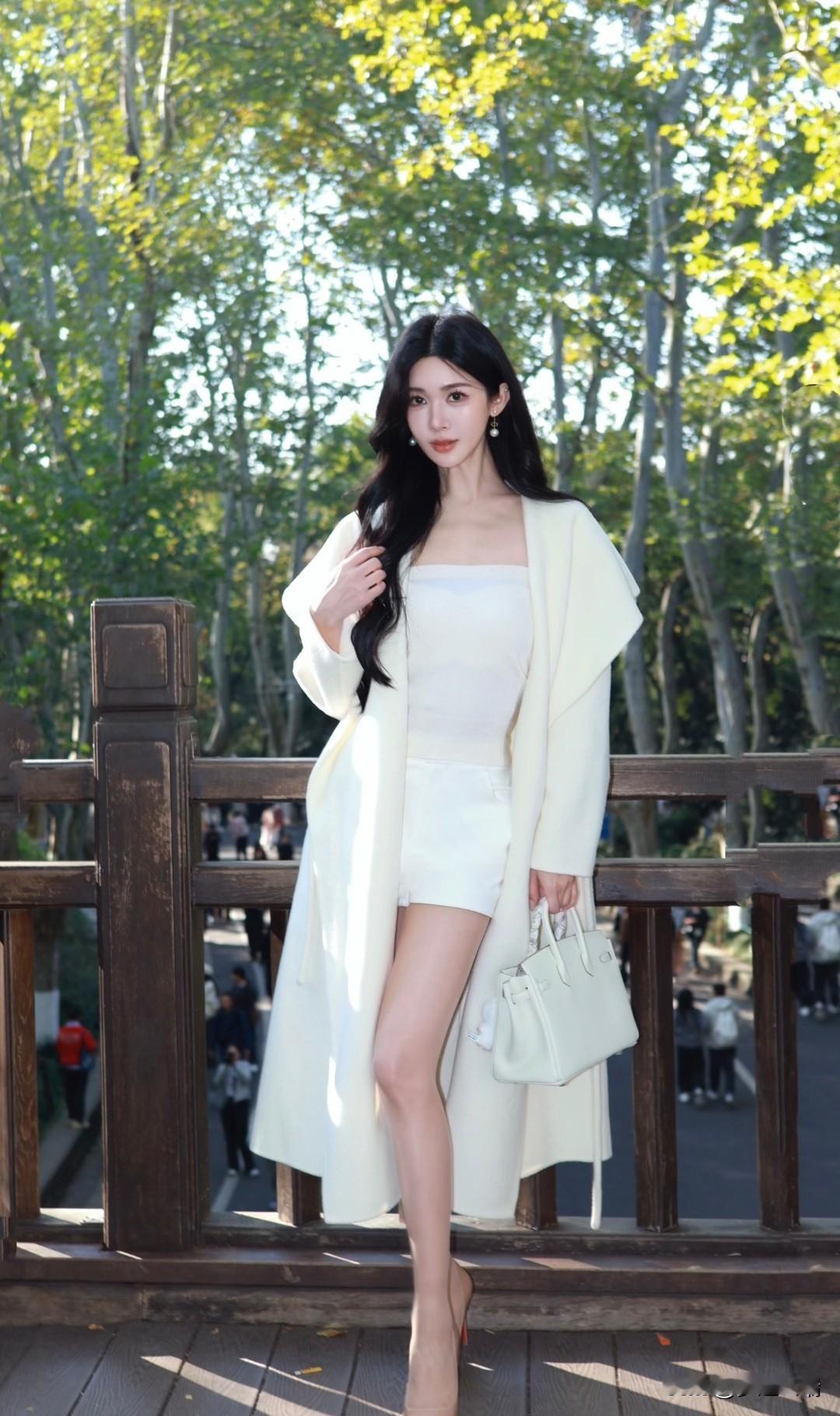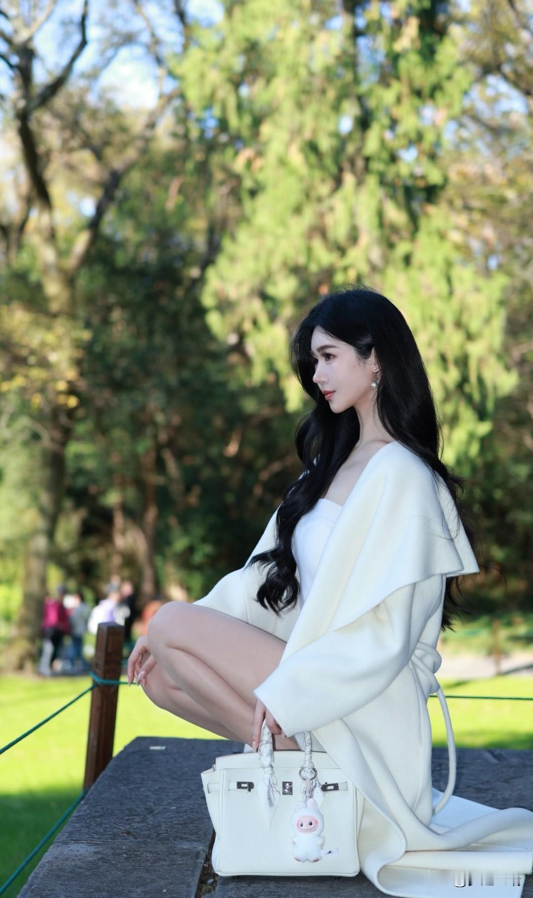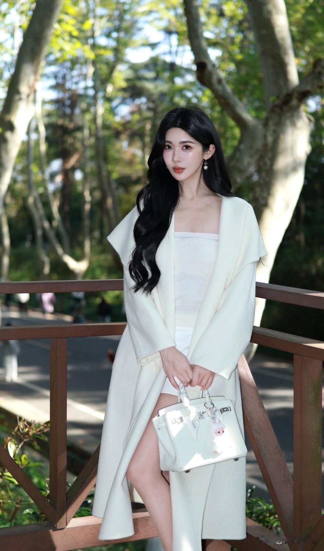 夏日清新,绿意盎然,优雅黑发,白裙飘逸,静享时光。