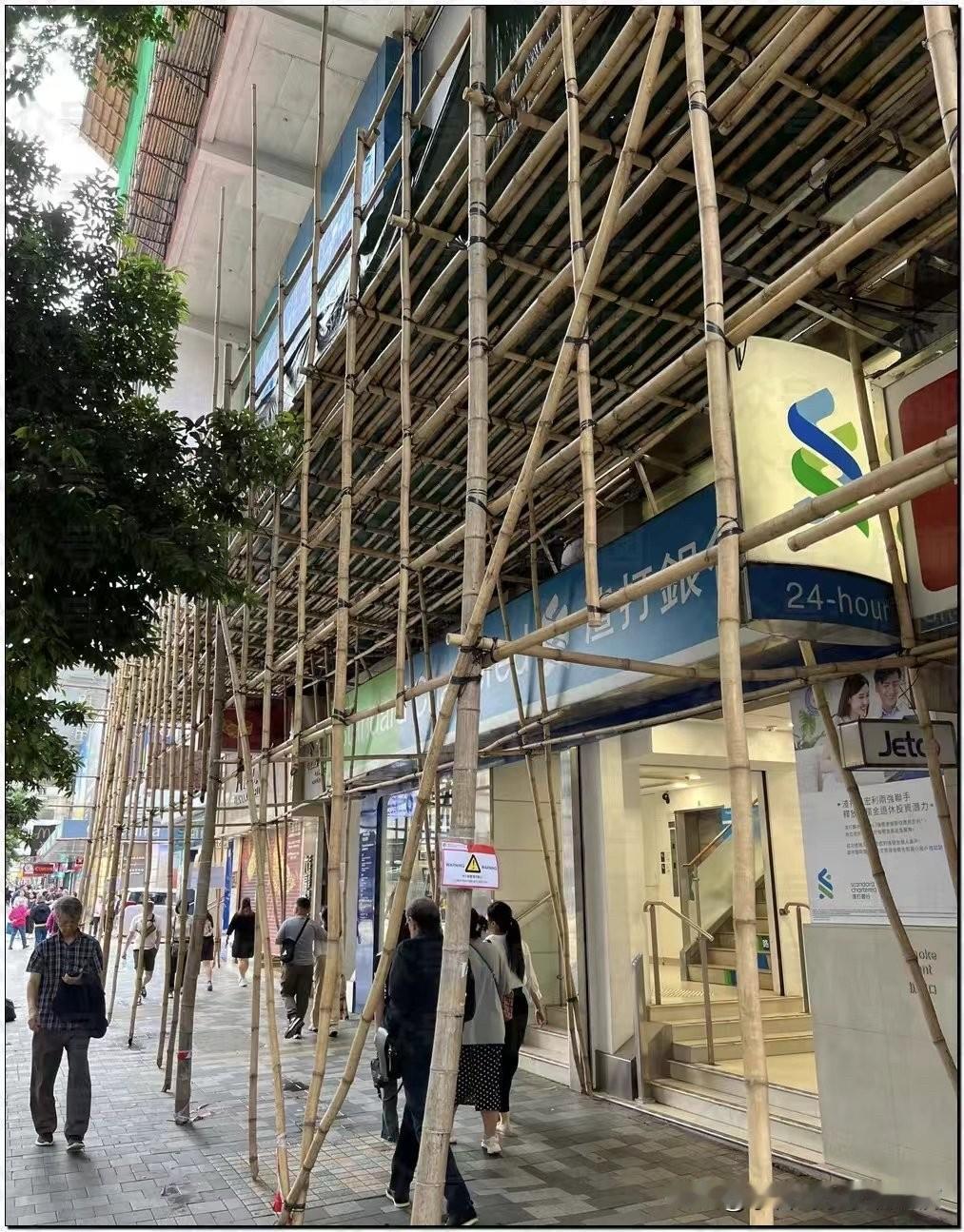 我去,香港高楼施工,用的居然是毛竹脚手架?(图一)怎么会这么落后?!!! 几十层高的楼层,全部是毛竹,想不着火都难啊!大陆都淘汰多少年了(图二)
