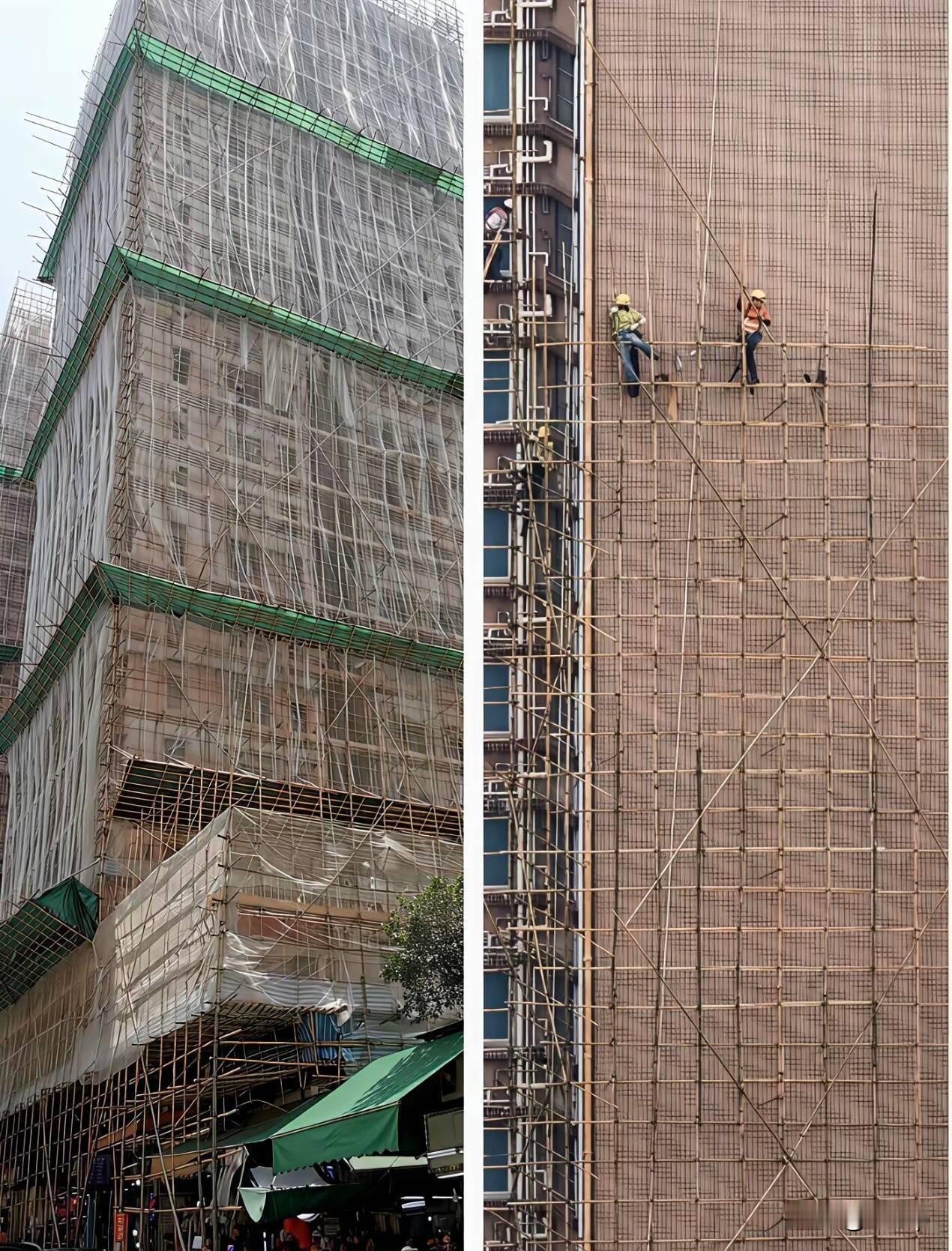 有人说香港怎么还用竹子搭脚手架 不是他们用不起铁制钢管 跟他们的“竹子协会”有关系 他们认为竹子用起来便捷又环保 现在江浙一带建房子也仍然在用竹子做的脚手架,尤其是自建房三层的那种 这次几栋楼同时起火还如此之快,除了风还有就是外边的绿网,这明显不是阻燃材料制作的,而且这几栋楼目测都50层的那种