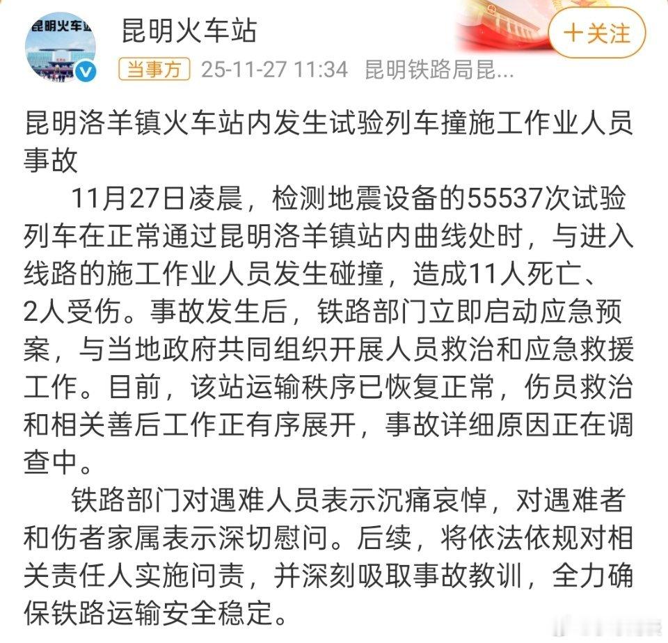 昆明一火车站试验列车撞人致11死痛心,这就是现实中的明天和意外