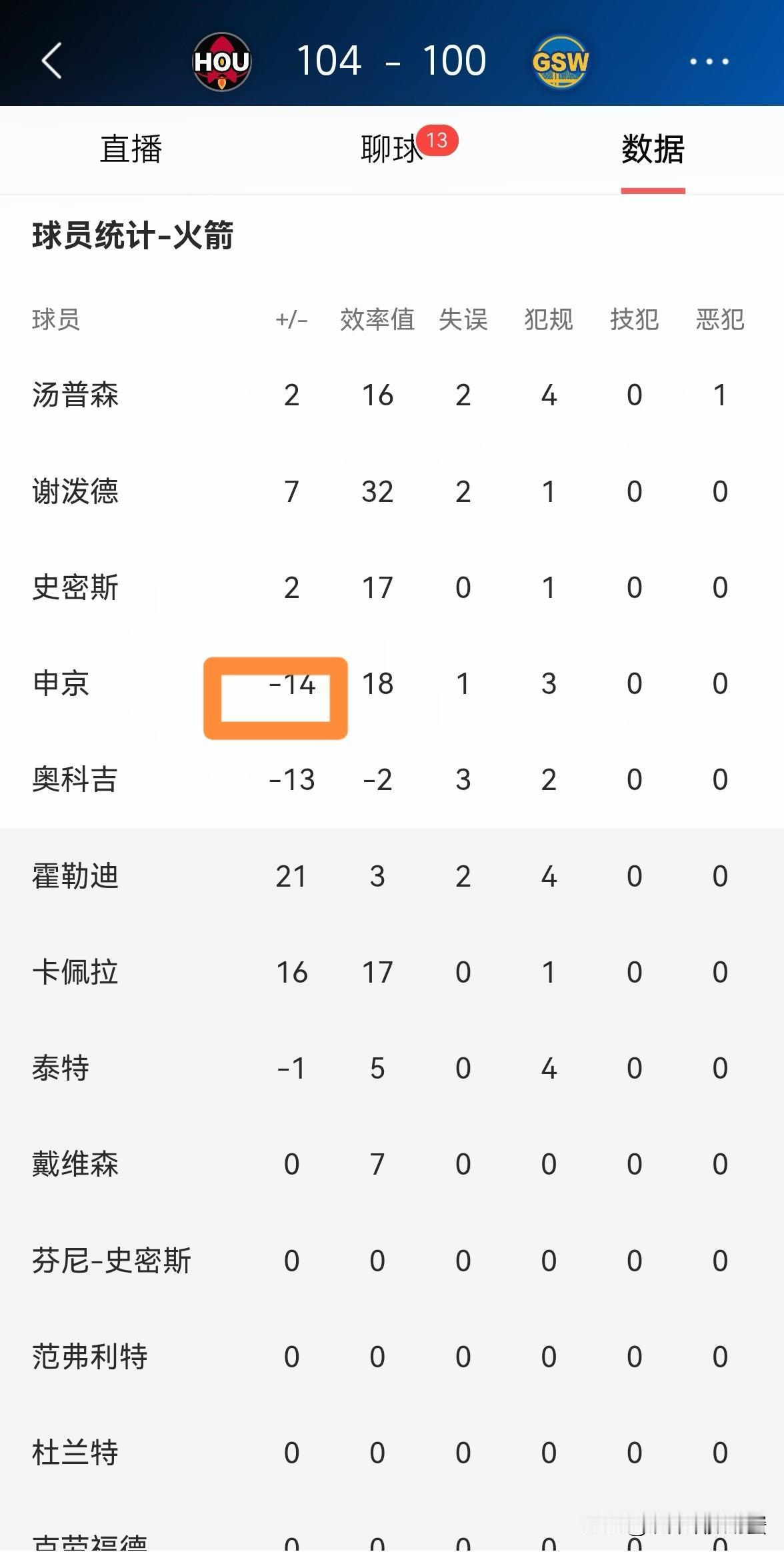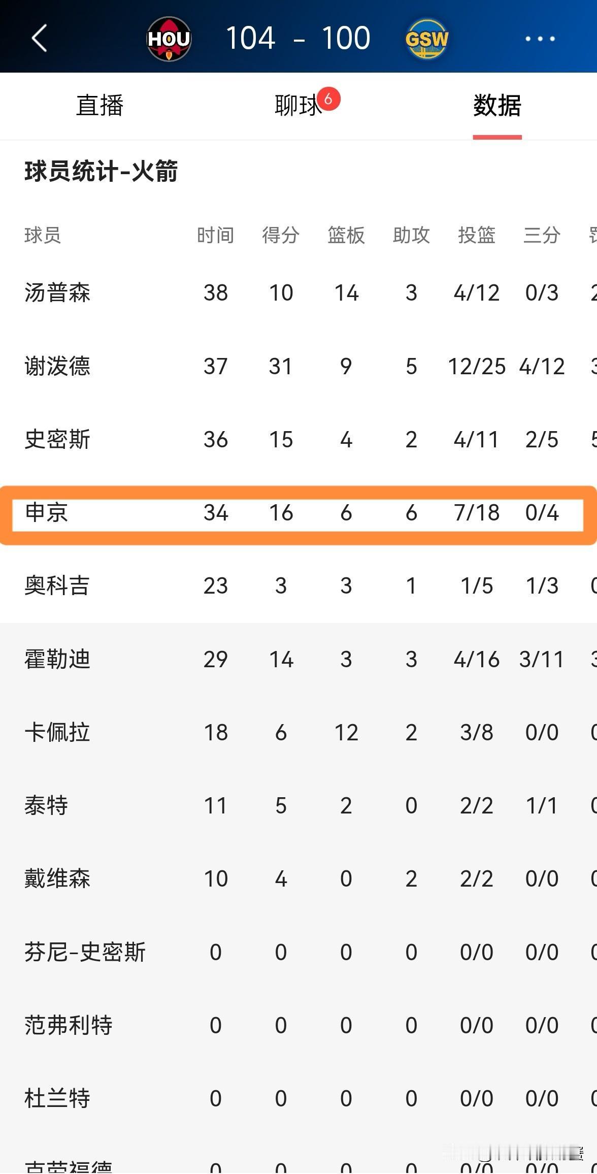 我强烈建议火箭管理层交易走申京!在今天火箭客场以104:100力克勇士的比赛中,申京首发出战34分钟,投篮18中7,其中三分球4中0、罚球5中2得到16分,他的场上正负值为全队最低的-14。坦白说,本场比赛如果不是谢波德在关键时刻力挽狂澜,申京的那些无脑进攻一定会导致球队输球。 事实证明,谢波德比申京更适合成为球队的基石,因此我建议火箭管理层交易走申京,从而扶正谢波德。