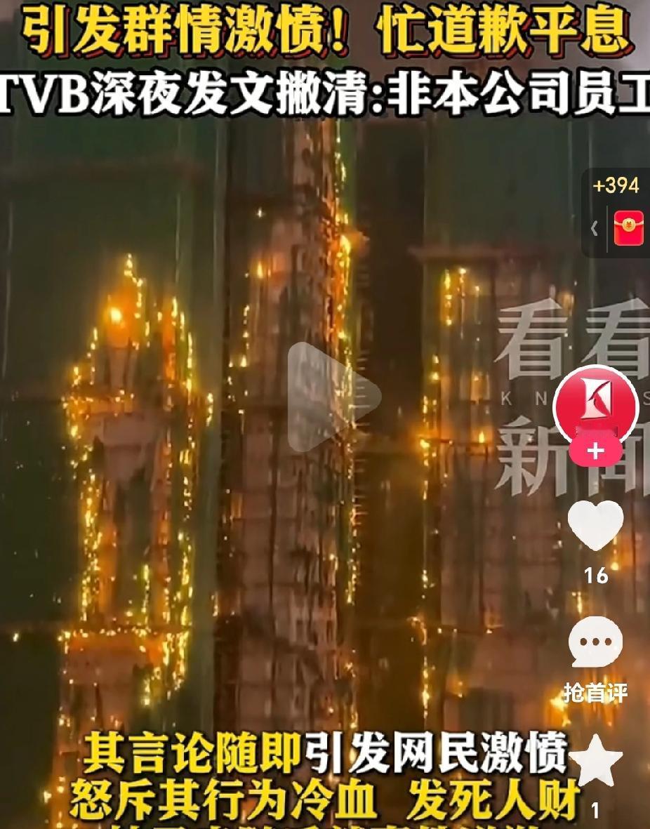 “发死人财”!借热度赚钱 演员林子幸被广大网友指责! 香港大楼燃烧事件,国人很关注,一方有难,八方支援。我们是同胞,都是中国人。 演员在朋友圈借此事热度,说各种买保险的重要性。推销保险。引发同胞愤怒。 人们关注的是,香港同胞的安全! 借题发挥,还想着赚钱! TVB深夜发文撇清:非公司员工。 结语:大灾大难面前,还是把心放在正道上才对!