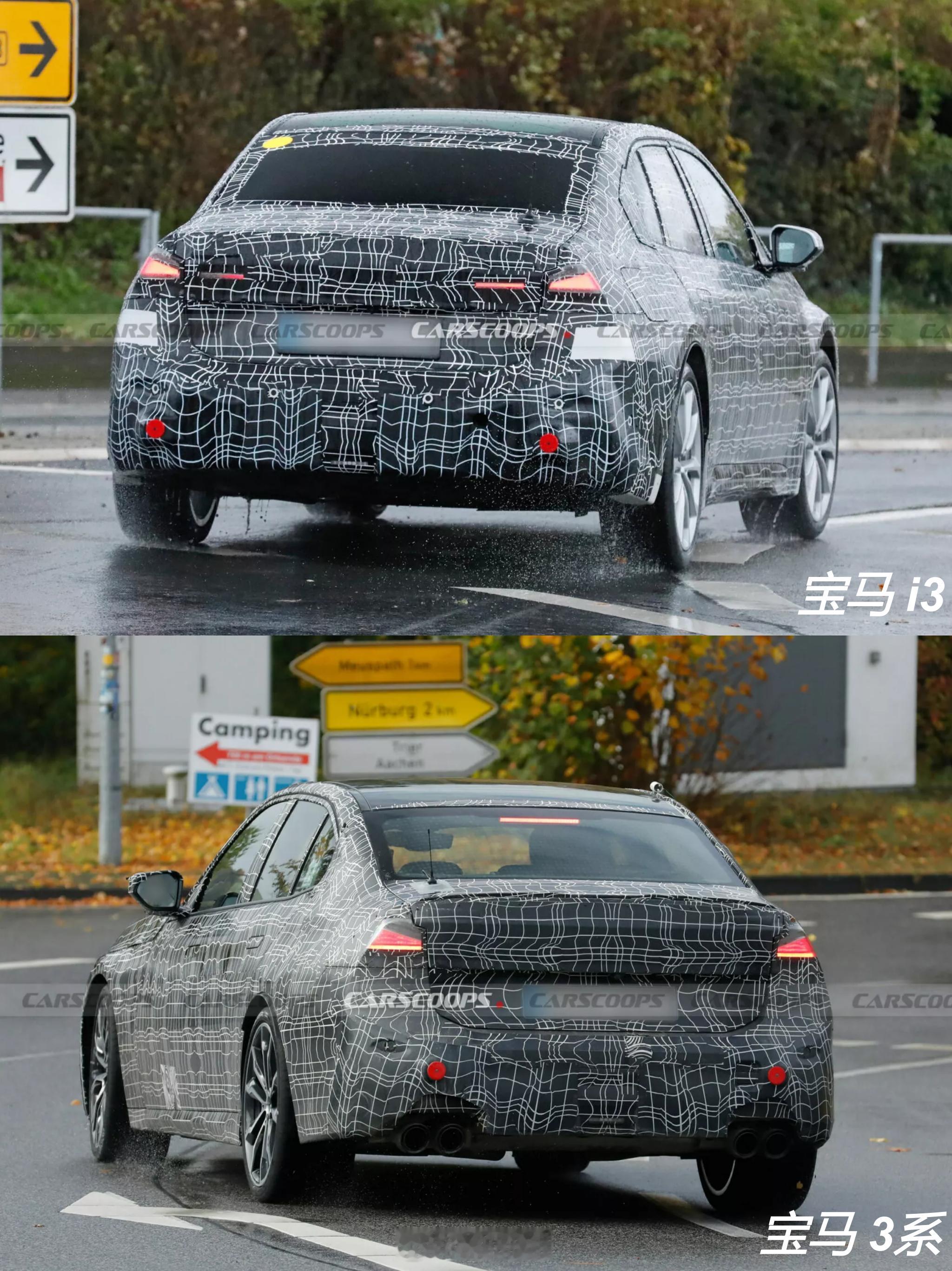 宝马下一代宝马i3和3系谍照曝光 下一代宝马i3 & 3系谍照曝光,纯电和燃油版车身姿态有所不同:纯电版车顶更平,燃油版则有一定下溜