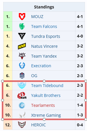 Blast成都站小组赛day2过后的积分形式,只能说还好有中国人民的老朋友,温柔的Yuma酱(Heroic)垫着不至于让四支中国队伍包揽倒数后四名