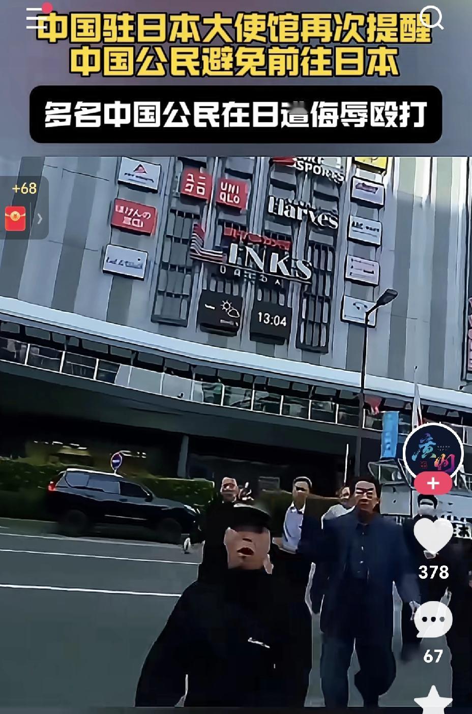 多名中国公民在日遭侮辱殴打,中国驻日本大使馆再次提醒:近期避免前往日本!日本 日本现状 高市早苗 这哪里是简单的治安问题,分明是右翼政客煽动下的“针对性敌意”大爆发!高市早苗公然叫嚣“台湾有事”,给右翼分子递了“尚方宝剑”,社交媒体上反华言论直接暴涨387%。 从东京留学生被围殴骨折,到台胞遭催泪瓦斯+铁棍袭击,今年已有27起针对中国人的恶性案件,可日本警方破案率低得惊人,不少施暴者至今逍遥法外。更可怕的是日本犯罪率连涨数年,重罪案件激增65.7%,安全环境早就今非昔比。 使馆的提醒从不是危言耸听,而是用同胞的血泪换来的警示——旅行是为了放松,不是拿安全赌运气。你觉得当下还该贸然赴日吗?来评论区聊聊你的看法!