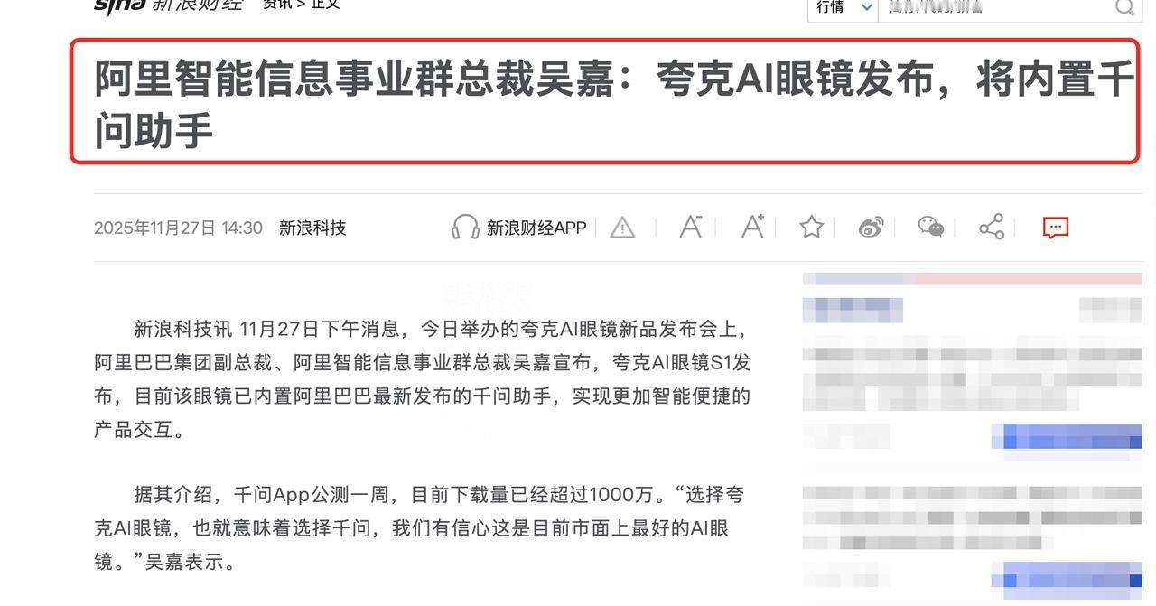 风向变了,硅谷巨头有点急了,因为中国科技崛起已经挡不住了! 硅谷的巨头们今年是真的急了,为了赶上中国AI发展的脚步,已经有点“丧心病狂”了。比如,Meta直接掏出2000亿美元要建新一代的数据中心园区,目标是在2025年底前,把130万块GPU部署到位。 美国那边的巨头们之所以这么疯狂,一方面是因为AI确实是未来的一个大方向,另外一方面主要是中国AI步子走的太快。 这不,最近就看到新闻,夸克AI发布的AI眼镜除了自研旗舰双显AI眼镜之外,还有更轻便,偏向时尚潮流单品非显示款的新品G1。 除了款式能满足不同人群的需要之外,更重要的是夸克AI眼镜的AI含金量非常高。根据阿里巴巴集团副总裁吴嘉在发布会上的发言,夸克AI眼镜还搭载了千问AI助手。 顶级的硬件设备+顶级的软件应用,强强联合,这下可就有好戏看了。 因为夸克AI眼镜放眼整个行业配置就是天花板级别的,比如镜片是由康耐特打造的,不仅非常薄,贴合度还很高,普通的近视用户,佩戴更舒适; 在拍视频方面,用上了行业首发RAW域超级夜景,这个技术能够让夸克AI眼镜在暗光环境拍视频、拍照片都很清晰,晚上工作,出行用它都没问题。 硬件配置方面超过了欧美meta等AI眼镜,如今再搭配上千问AI助手,夸克AI眼镜很有可能成为六边形战士,成为行业天花板。 因为千问AI助手的模型基地是阿里千问大模型,自2023年开源以来,Qwen模型全球下载量已突破7亿次,衍生模型突破了17万个,超越了Llama。 在基础模型实力方面阿里千问大模型对硅谷实现碾压,个人AI助手——阿里千问,下载速度也超越了美国那边的公司,阿里千问公测一周下载量就突破了1000万,超越了ChatGPT、Sora等产品,成为史上增长最快的AI应用。这也代表着广大的用户,对于阿里千问的认可。 作为产品,终究是要落到市场端、落到个人应用端。通过这些我们能看到,当前阿里千问不仅模型实力吊打硅谷,并且还赢得了海内外的认可,而夸克AI眼镜又对欧美的AI眼镜实现了碾压。 通过夸克AI眼镜和阿里千问的联合,似乎能读懂为啥硅谷巨头们陷入疯狂了。毕竟中国在高科技领域过去是一个追随者,现在直接成了领跑者了。 这给谁谁能受得了?在这种落差之下,除了大量的砸钱,似乎也没啥好的办法!只能说时代变了,中国科技崛起已成定局!