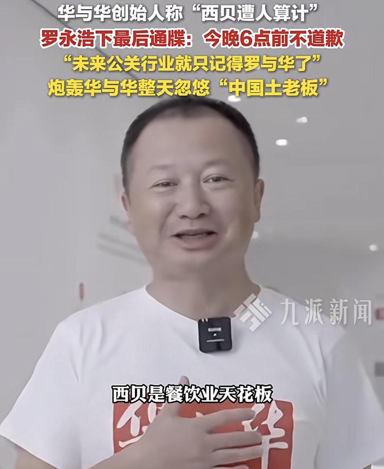 硬生生大半年的热搜,也没谁了! 我们看到整个事件,老罗只是起了个头,唱跑调的是西贝自己,底下操作的却是华与华。西贝这个钱没白花呀,这个热度一直下不来啊。 本来大家忘记了西贝的问题,华与华又把它翻出来!罗永浩本来就是靠嘴皮子起家的,问题你华与华自己的论点站不住脚还非要去惹他,不是自找苦吃又是什么?(来源:九派新闻) 难道就不知道老罗动嘴巴没输过,干实业没成功过吗,很多人是没有经商天赋的,但不代表这些人没有是非观。老罗很多事做得是不对,但这件事,又为什么这么多人支持呢?华与华应该保持沉默不语才是。