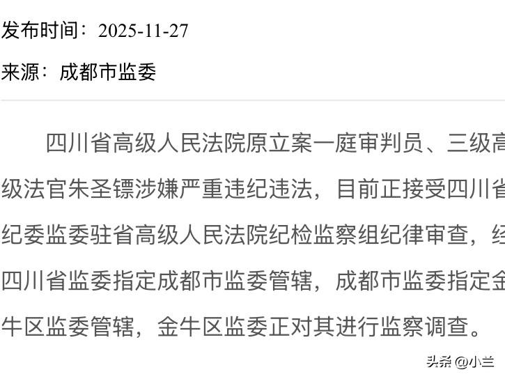 今天四川的朱圣镖上了热搜, 他是1965年出生的浙江浦江人, 1986年开始工作, 长期从事法律工作, 在四川任过不少关键岗位, 工作经验非常丰富, 他今年60岁了, 差不多就要退休, 本可以安然隐退, 今天却被上了热搜, 这着实令人唏嘘, 做了不该做的事, 终究逃不掉的!