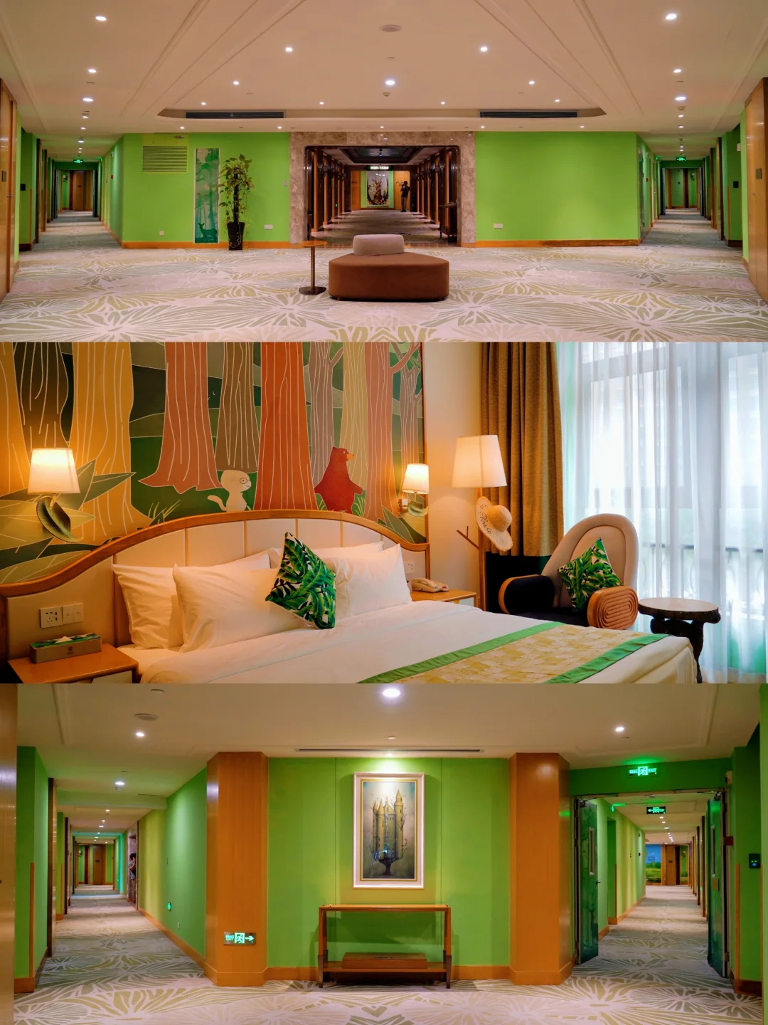 酒店分为四个主题城.堡,冰川、沙漠、海洋、森林。充满童趣的色彩很是可爱