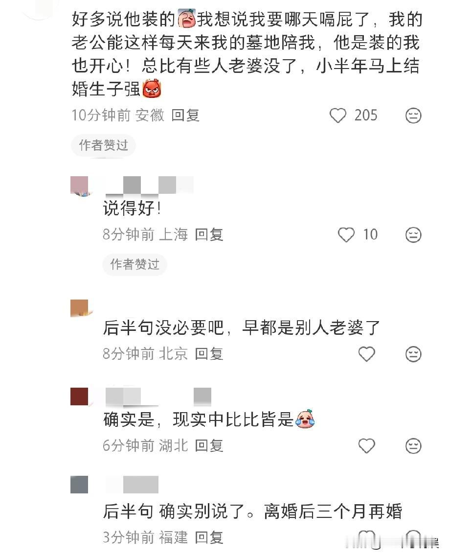具俊晔又被拍到在大S墓前陪伴,墓前放着新鲜的食物和鲜花,具俊晔坐在椅子上与一旁的人说话。 真是没想到,大S已经走了9个多月了,他依然天天坚持去墓地陪伴,在世界上应该找不到第二人了。 对于他的行为,有认同觉得他是真心的,也有觉得他是装的。不过他坚持这么久,也越来越多人支持他,被他感动了。 因为哪怕他是做给别人看的,那能坚持这么久也非常了不起了,现实中,老婆去世了,几个月再娶的有很多。 而且他是真的有认真在陪伴,每次都带着大S的爱吃的食物和饮料,吃饭也是一起,就像大S还活着一样。 还有不少细心的网友发现大S的墓地被擦的亮亮的,与旁边灰蒙蒙的形成鲜明对比。 除了具俊晔,大S身边的朋友都也还没走出来,吴佩慈在前几天也突然发长文怀念她。 还有许多不认识的网友说出她曾经的一些善举,同样也接受不了她的离去,她的好,确实是难以让接触过她的人忘怀。