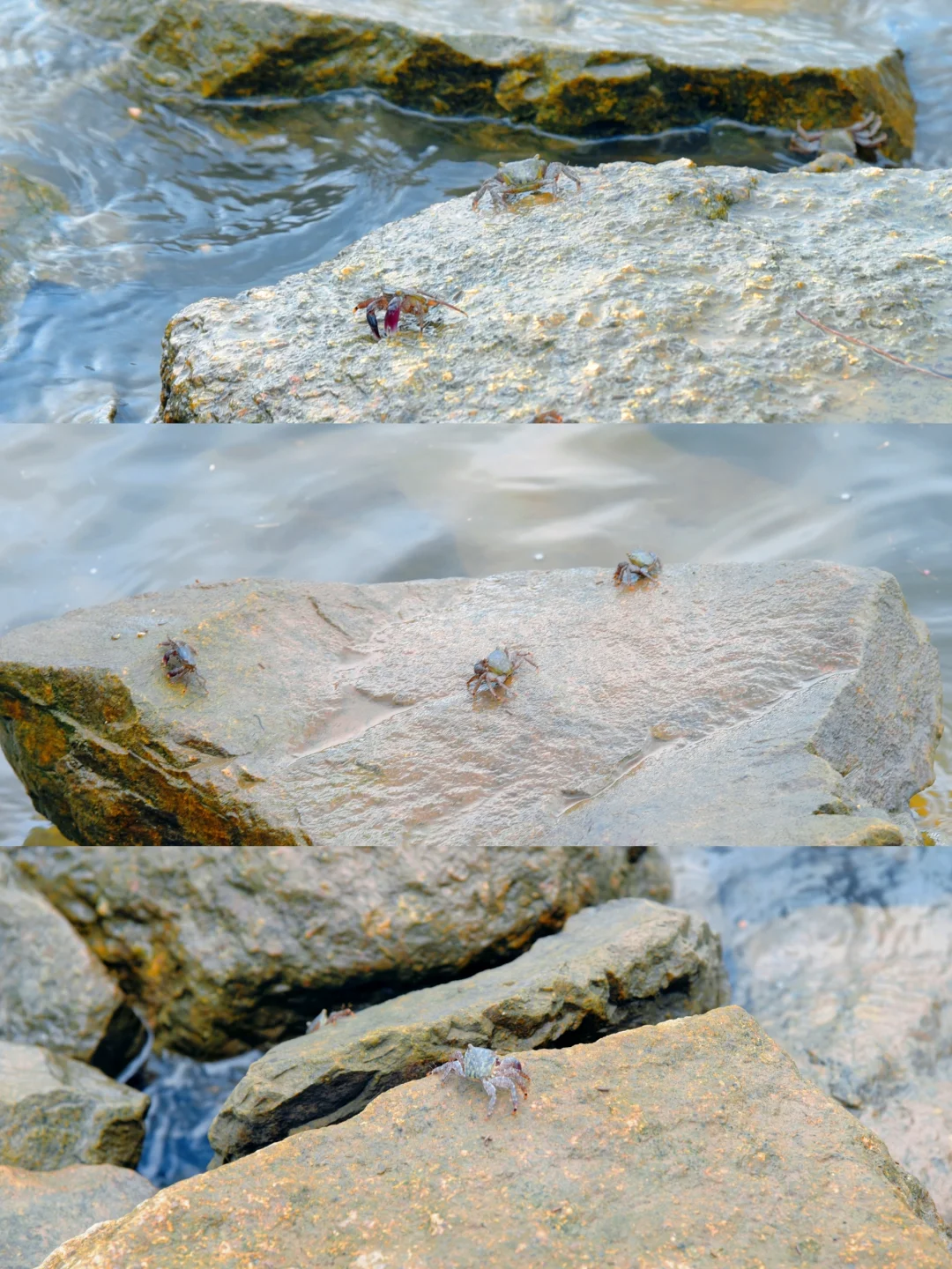 可海岸线的礁石间藏着许多可爱的小螃蟹