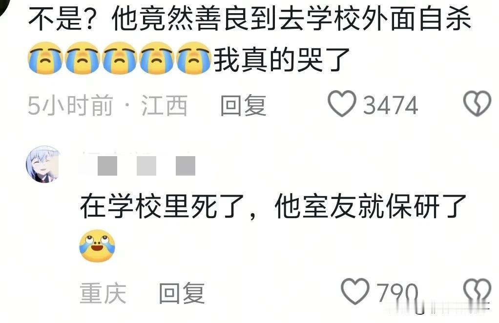 赖某进入江西赣州某技术学院就读,5名室友4个抽烟,每天打游戏到凌晨2点,赖某因为无法正常睡觉,导致抑郁,多次和辅导员申请换寝室,均被拒绝,他表示自己要窒息了,再不换寝室就要死了,最终他的尸体在校外河中被发现。赖某父母:学校应该负全责。 法院判决:学校担责30%,赔偿30万元。 网友:辅导员为什么抗拒换宿舍,解释一下。 网友:他好善良,就连轻生都选择在校外。 网友:30万元,人命如此轻贱,父母培养他这么多年,何止30万元,他们永远失去了自己的儿子,不知道室友和辅导员,会不会愧疚。