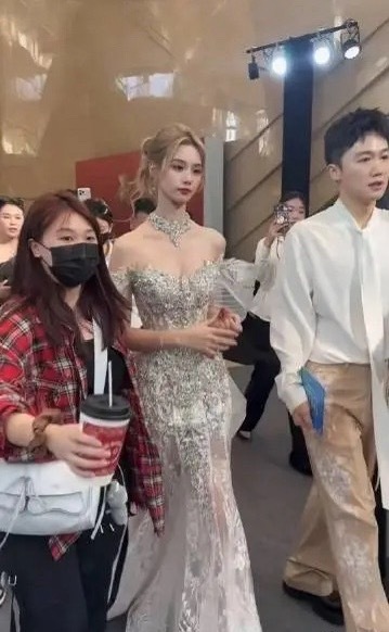 高圆圆旁边这是谁啊??身材好好啊,就是这个裙子的布料……