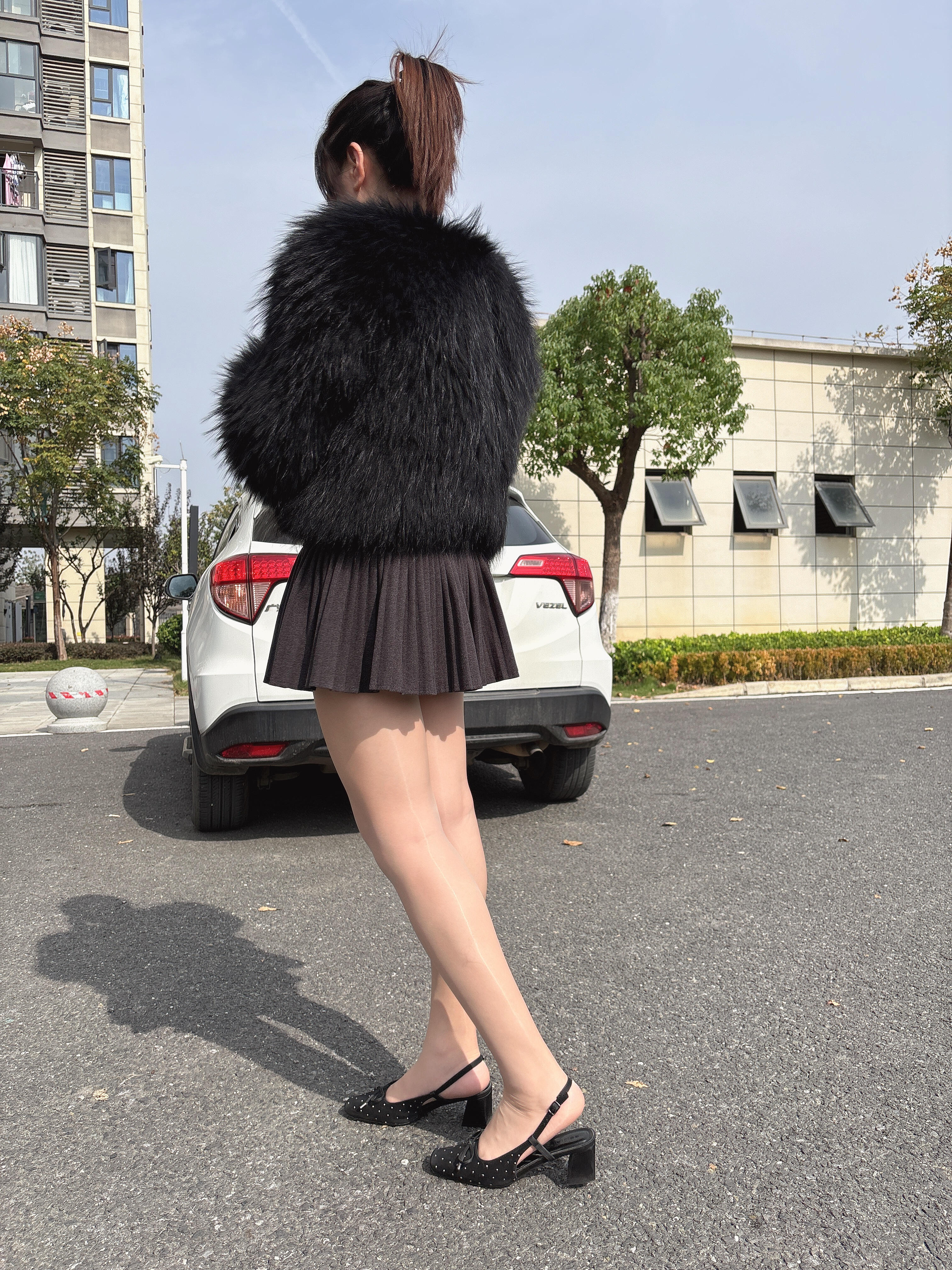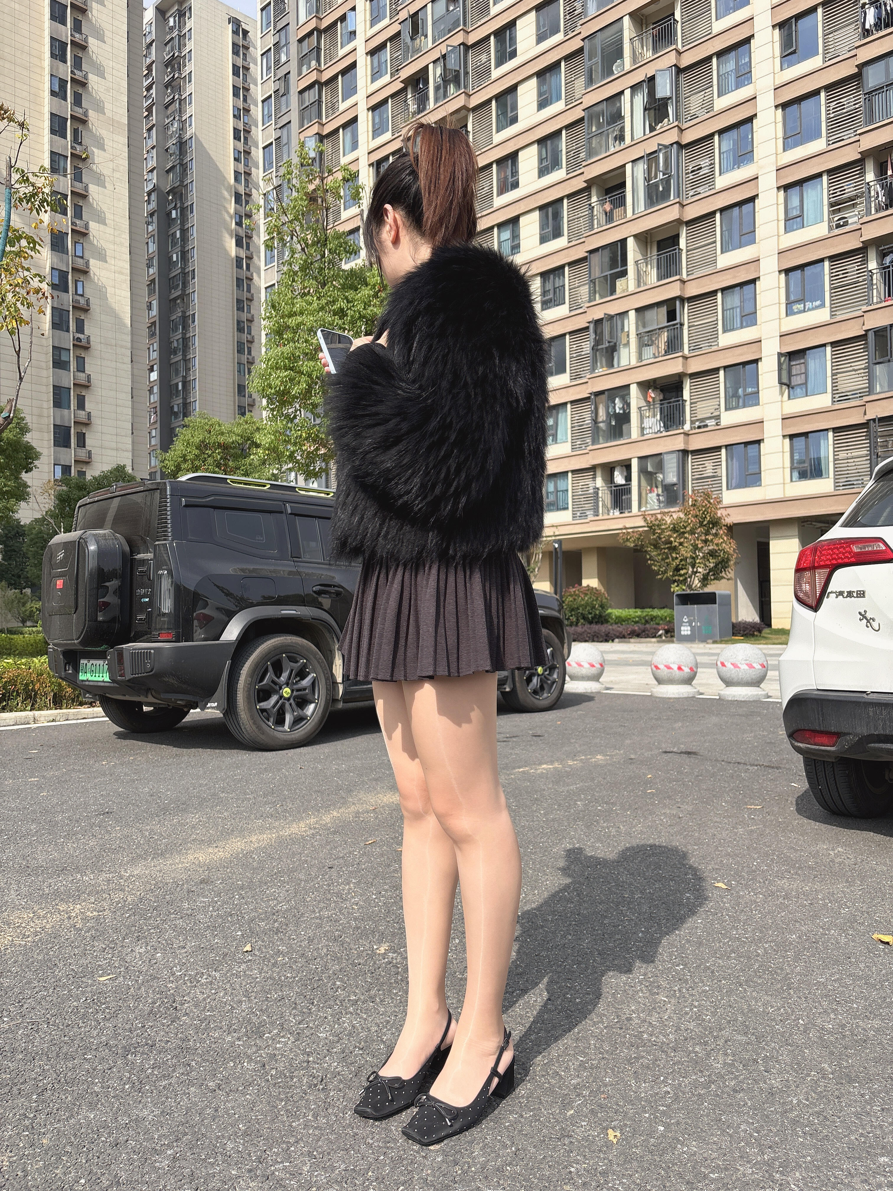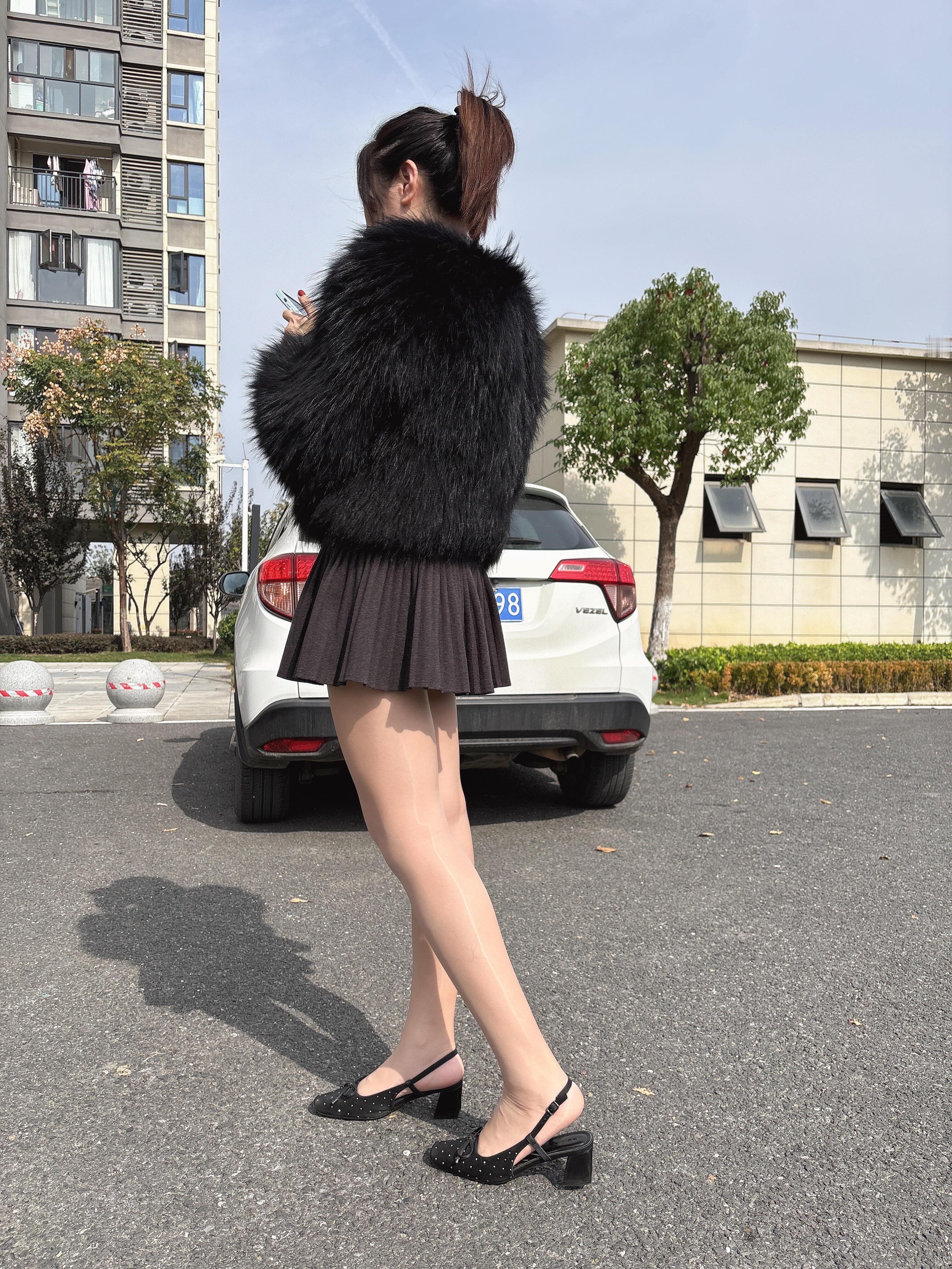 黑狐毛外套一整个显贵buff叠满!百褶短裙+透肤袜刚好中和厚重感,钻饰凉鞋把精致写在脚背上——谁懂啊,这才是秋冬“松弛贵美人”的正确打开方式🤌 秋冬穿搭