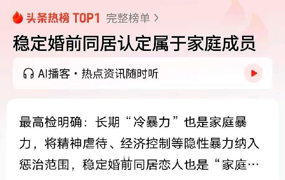 这一下,还没结婚的人又要慌了,因为新规发布,婚前同居也被认定为家庭成员。 这样就意味着责任会更多。 如果婚前同居就认为是家人的话,那还结婚干什么? 按照以前的说法,非法同居就是流氓罪,虽然现在没有这个罪了。 但是有违公序良俗! 为什么要鼓励同居? 同居如果有了后代,这算私生子,其中一方如果这时候逃离了怎么算? 他有责任没有? 他没有结婚就没有责任吗? 乱乱乱,太乱了。 无论男女,性需求有时候会很随意。 但是,现在年轻人的工作不稳定,导致未来生活的物质保障太多变数。 前期的坚贞不渝,随着经济基础的不稳,带来同居后的乱象增多。 不婚的人基本也是这个原因。 现在太乱了,应该恢复通奸罪,未婚同居坐牢,剥夺私生子继承权。 不结婚可以避免很多风险,例如家庭暴力、精神控制、生完孩子男方不给钱、责任全推女性。 这些法律都是建立在伤害女性以后的补救,我们为什么结婚求伤害? 吃霉了。