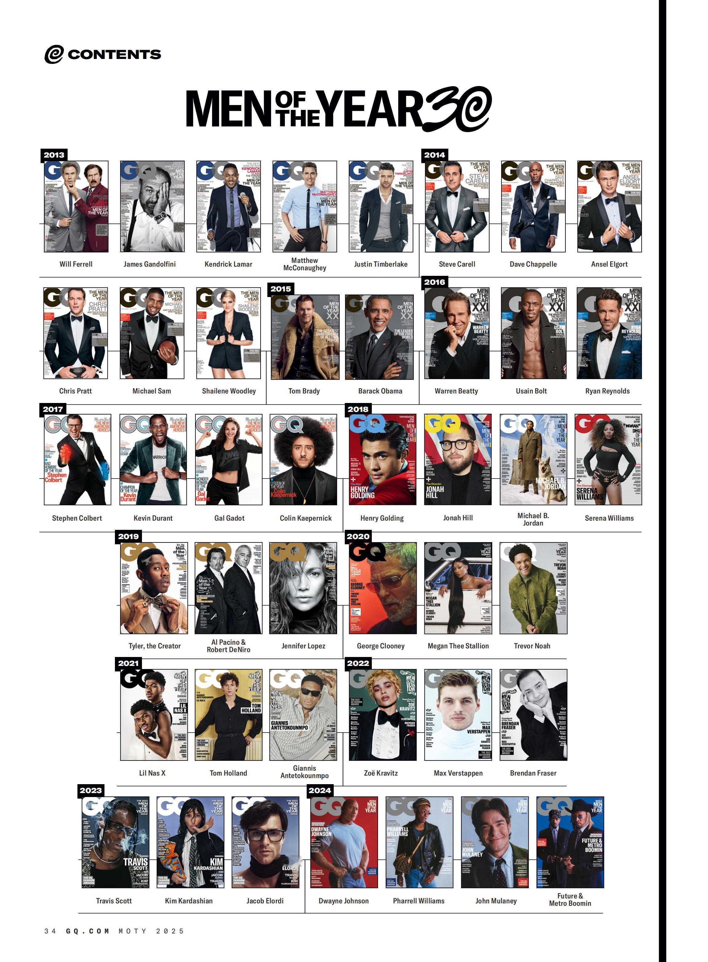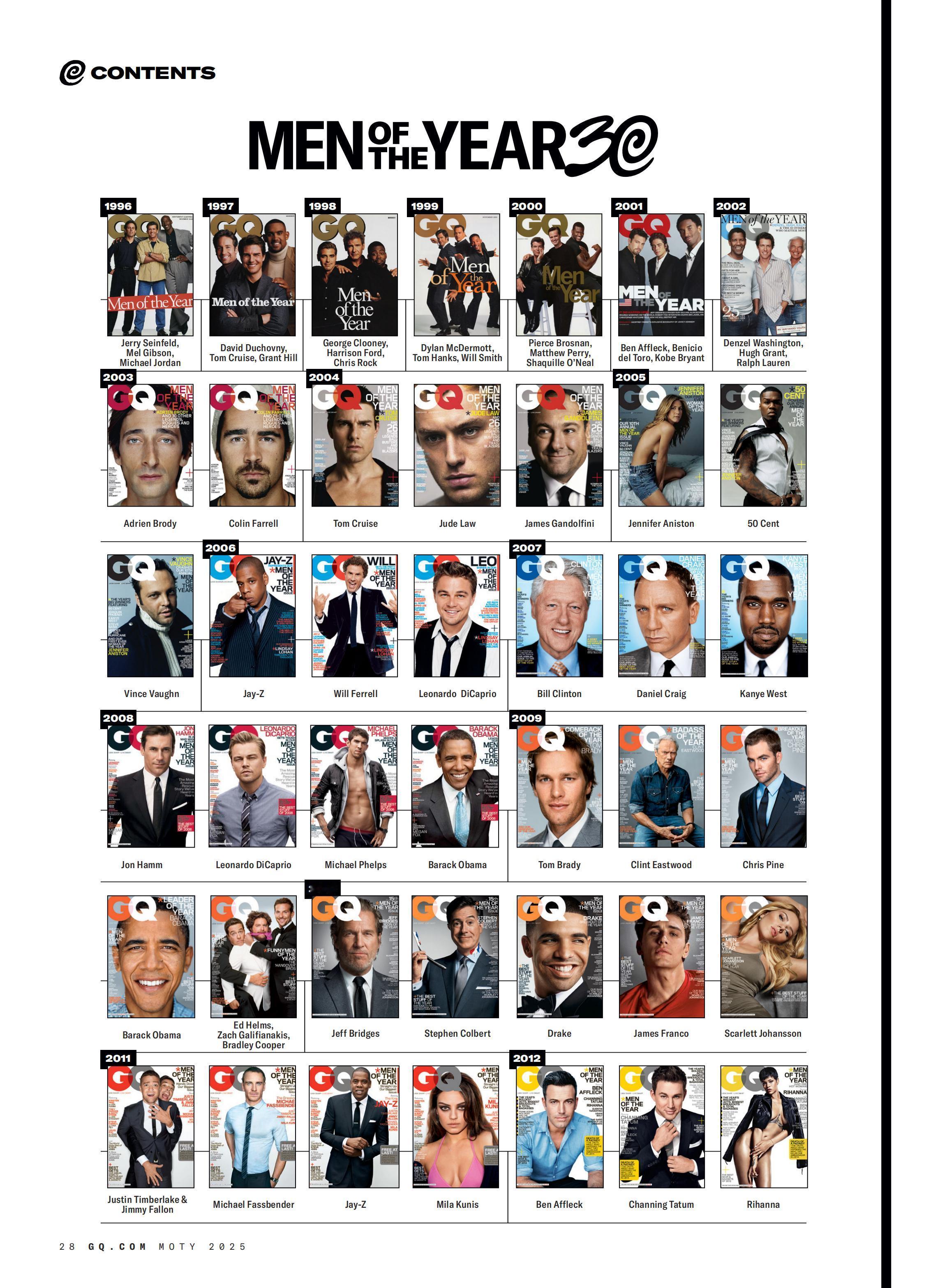母版美国 GQ 自 1996 年推出 Men Of The Year 专题以来到今年正好迎来三十周年意义节点 ,杂志在出版的新一期内容里也对过往年度人物进行了一个全面的汇总回顾 ,我们顺道看看 ~