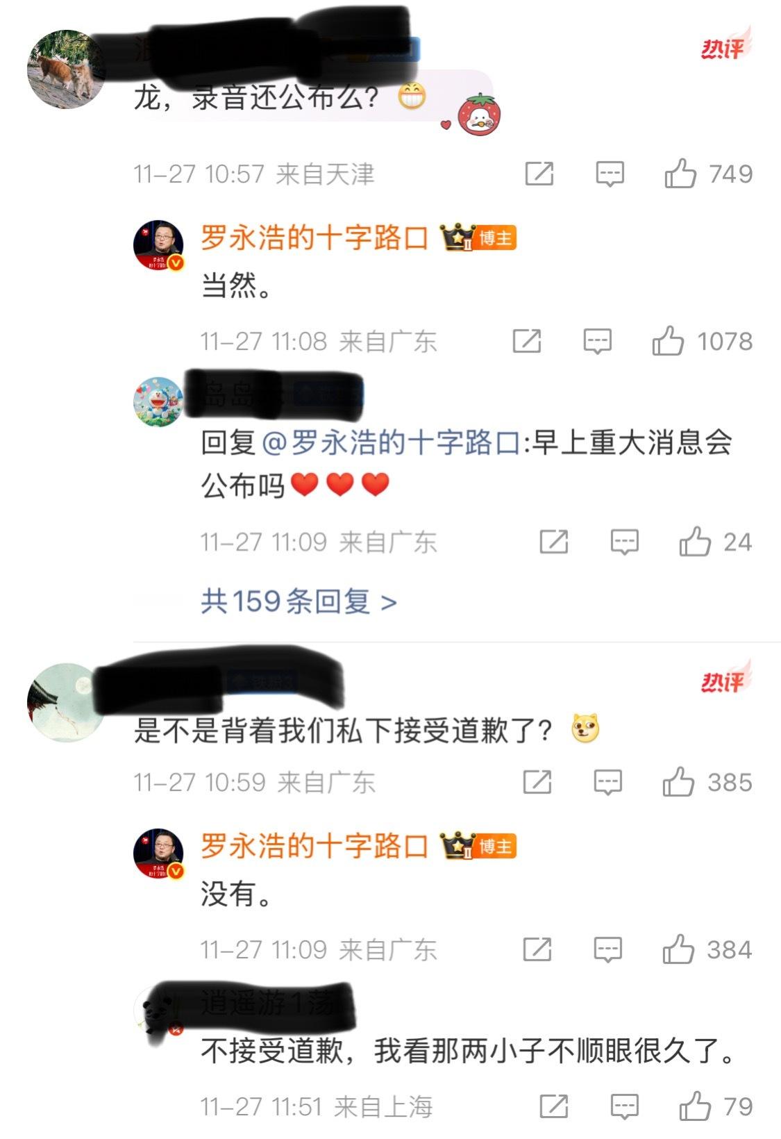 罗永浩没有发录音,转发捐款了。这时候占用公共资源不合适。刚刚,罗永浩也说了,没有私下接受道歉,录音也一定会公布。
