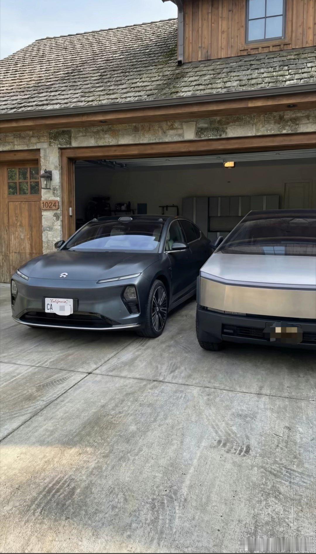 车主自费运到加州的蔚来,大家觉得和旁边的cybertruck比起来,颜值如何?电车出海大v聊车蔚来