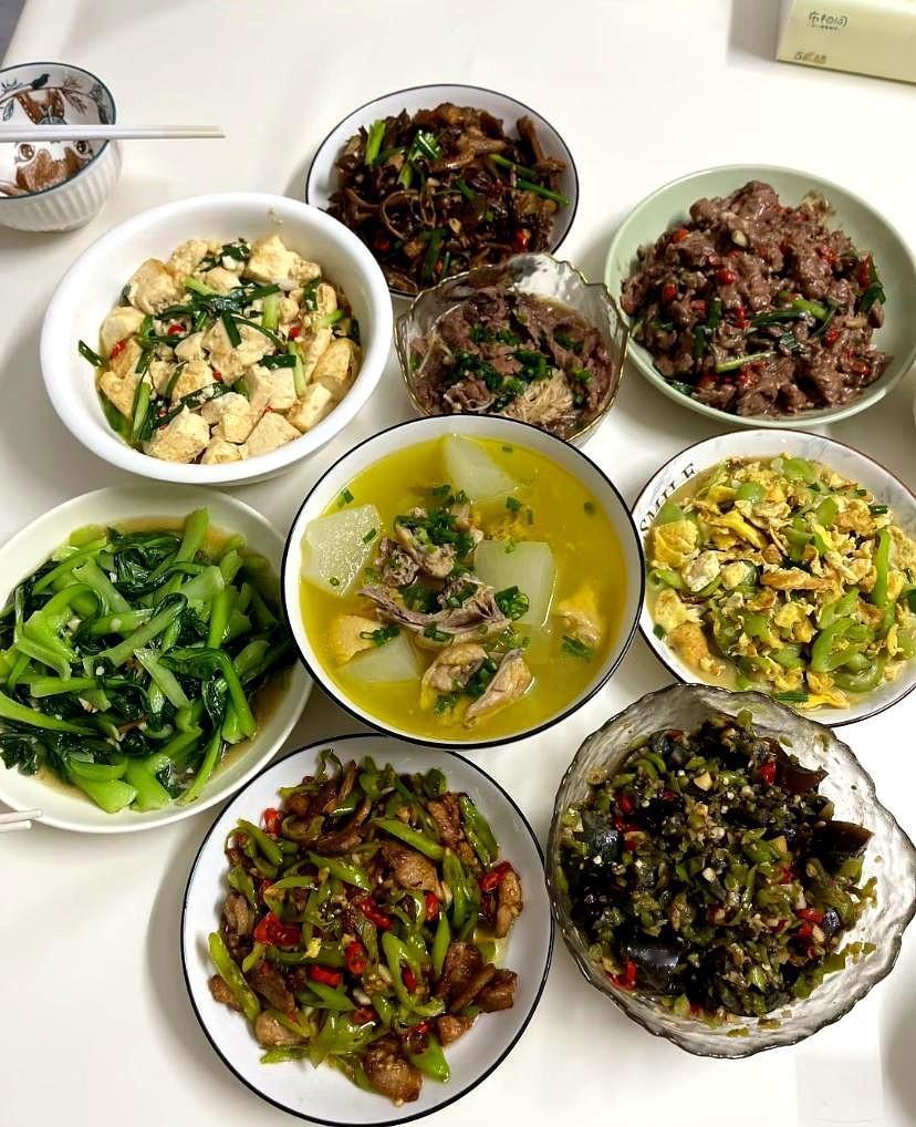 我婆婆说这一桌菜超越了百分之九十九的家庭了,真的吗? 她说一般家庭一顿根本吃不起这么多菜,我算是嫁对了! 小时候,家里就一个蒸咸辣菜,过年都没有这么丰富的菜肴 色香味均缺失。一般家庭不是吃不起这些菜,而是根本不吃这些菜。太有“饱腹感”了。 为博取眼球赚流量,多么狂妄无知的家庭狂言。 这桌菜搁在中国每一个家庭,普通下饭菜而已。 是挺丰富的,吃得完吗?