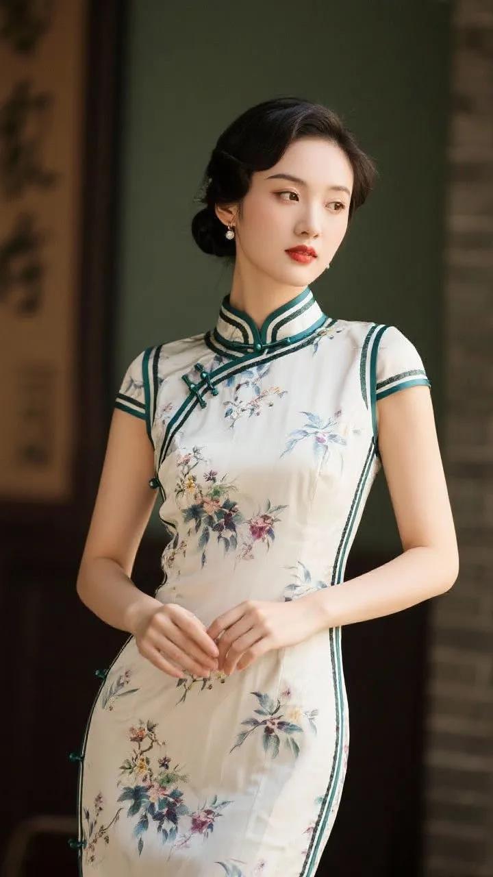 白旗袍绣繁花,银饰簪发添雅致,她将东方的婉约与魅惑揉成一体,每一寸剪裁都在诉说旗
