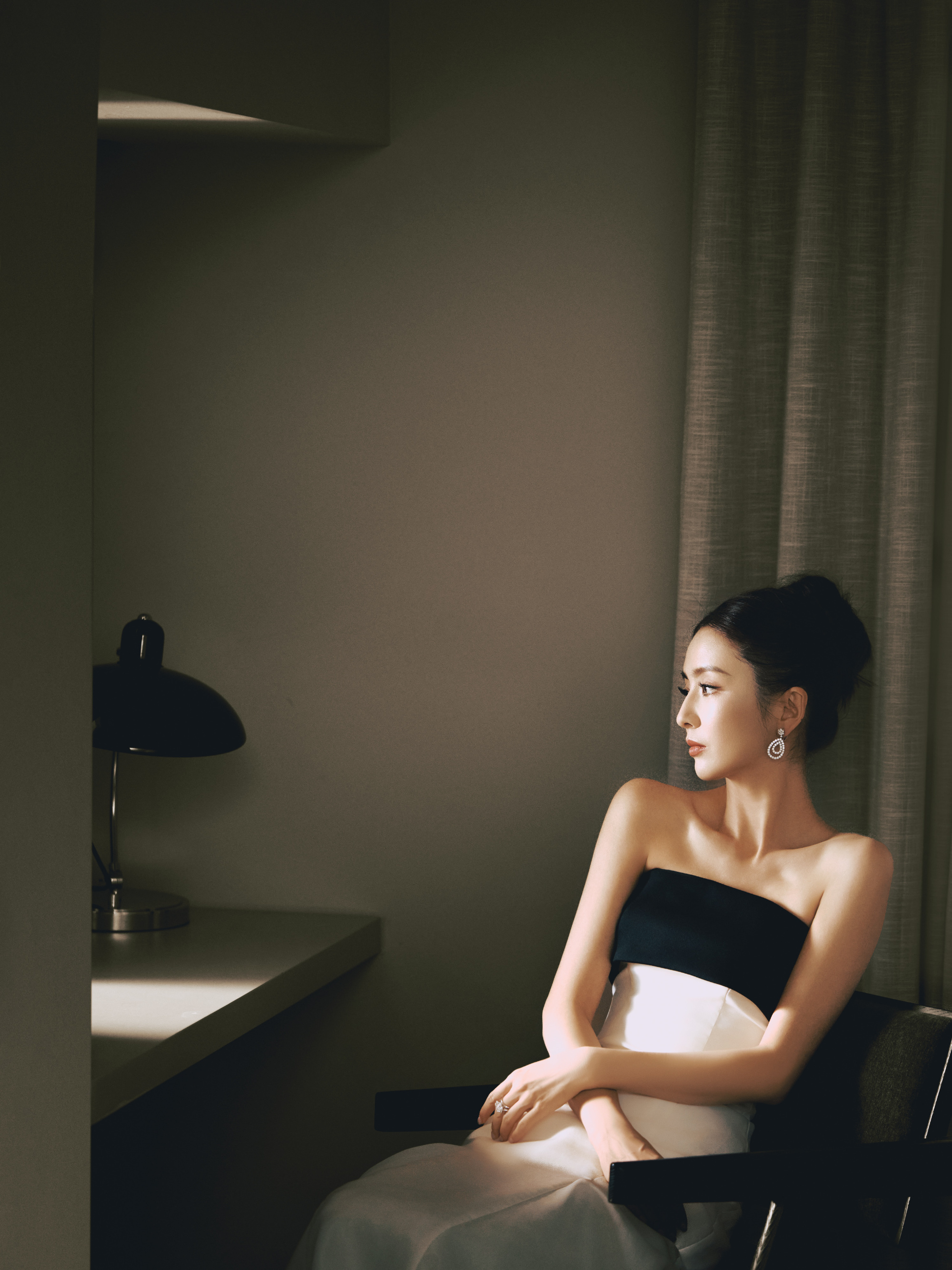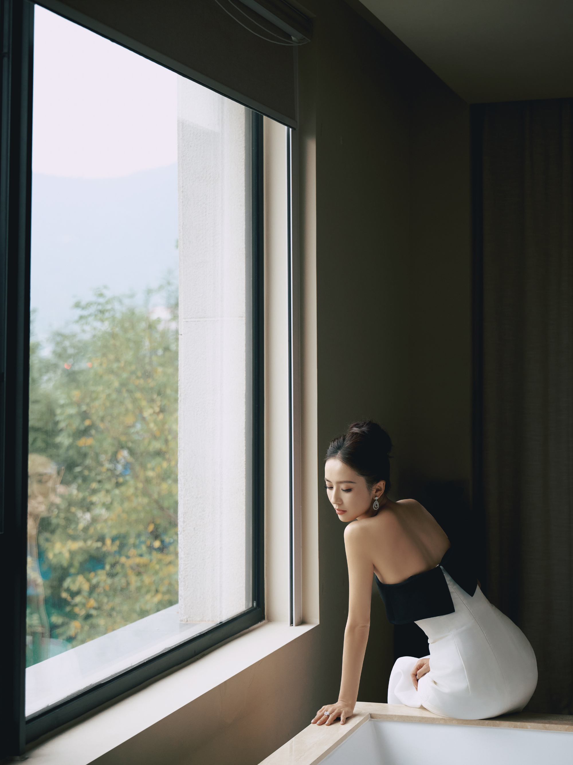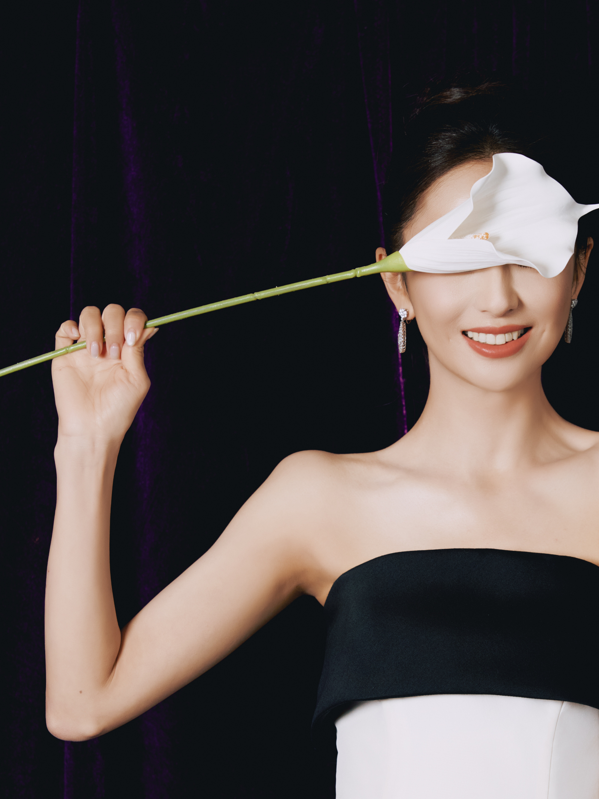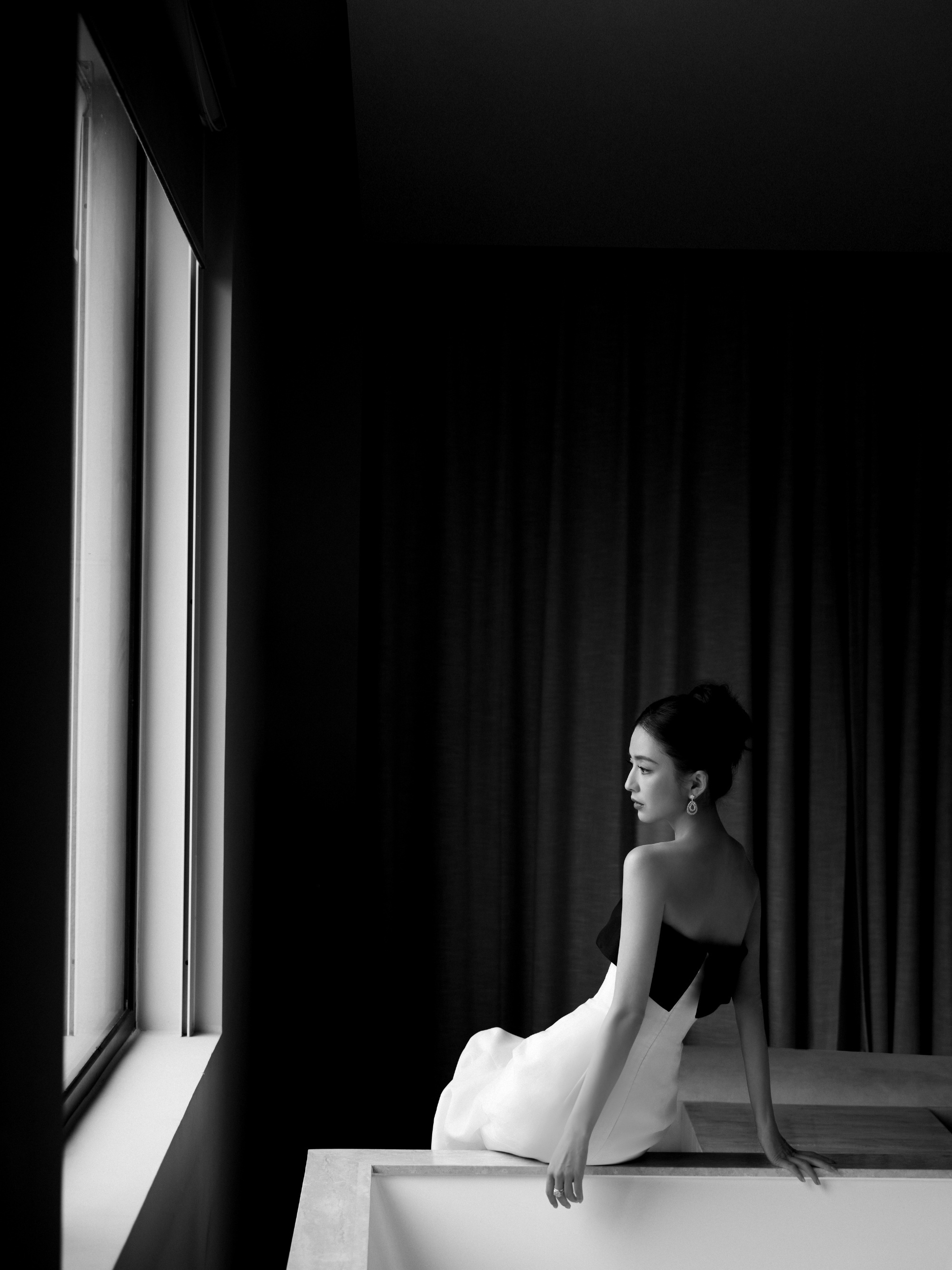 佟丽娅黑白色彩穿搭大片,柔美姿态下的浪漫格调