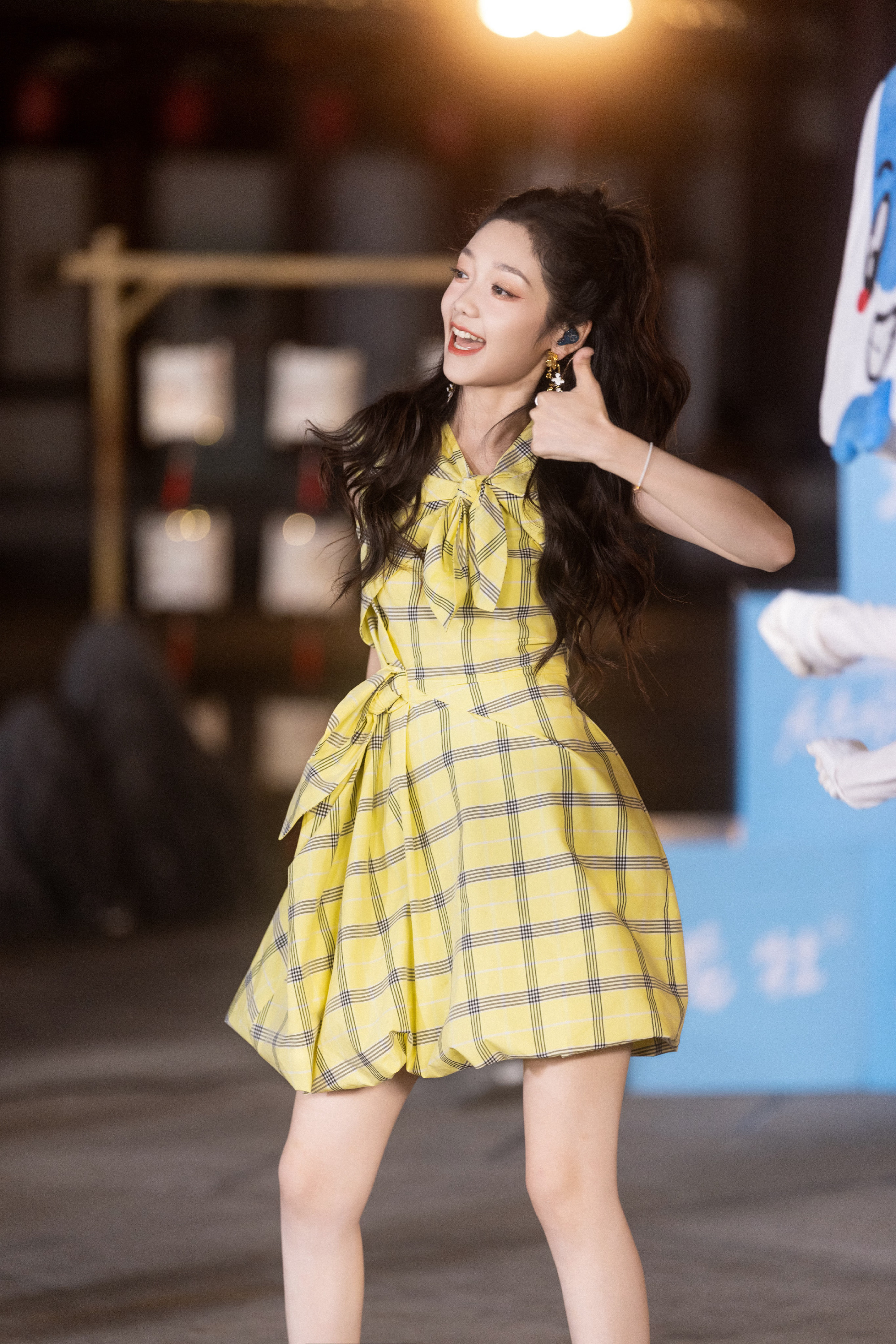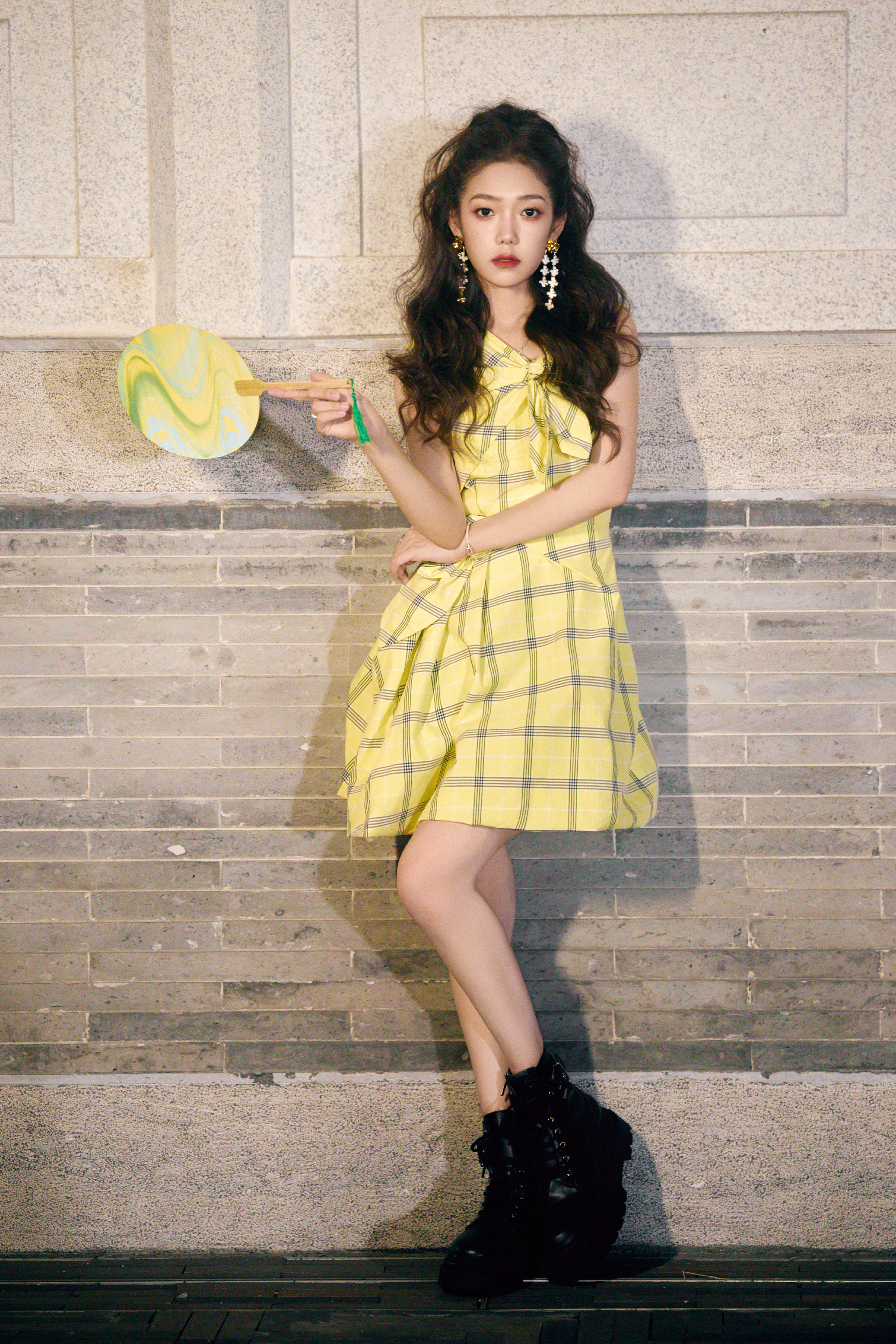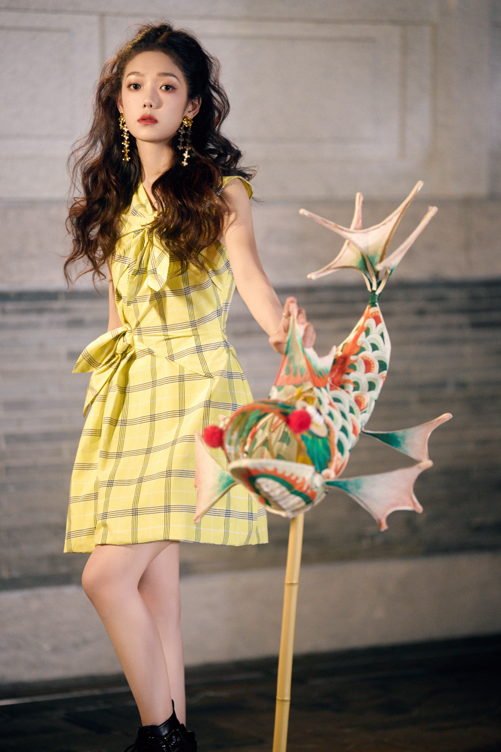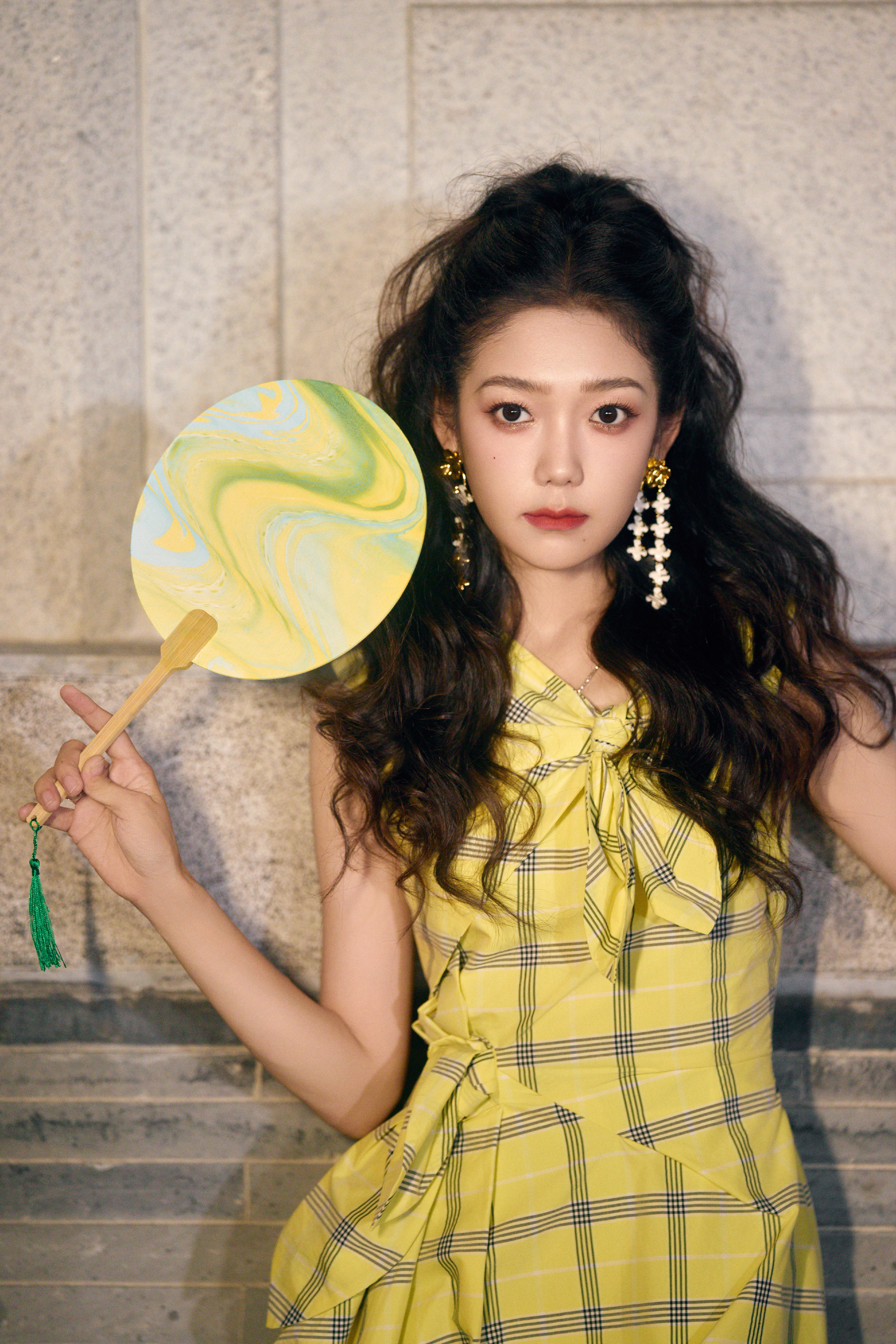 希林娜依高格纹小黄裙:青山流水,明月风荷,轻舟短棹,夜听菱歌