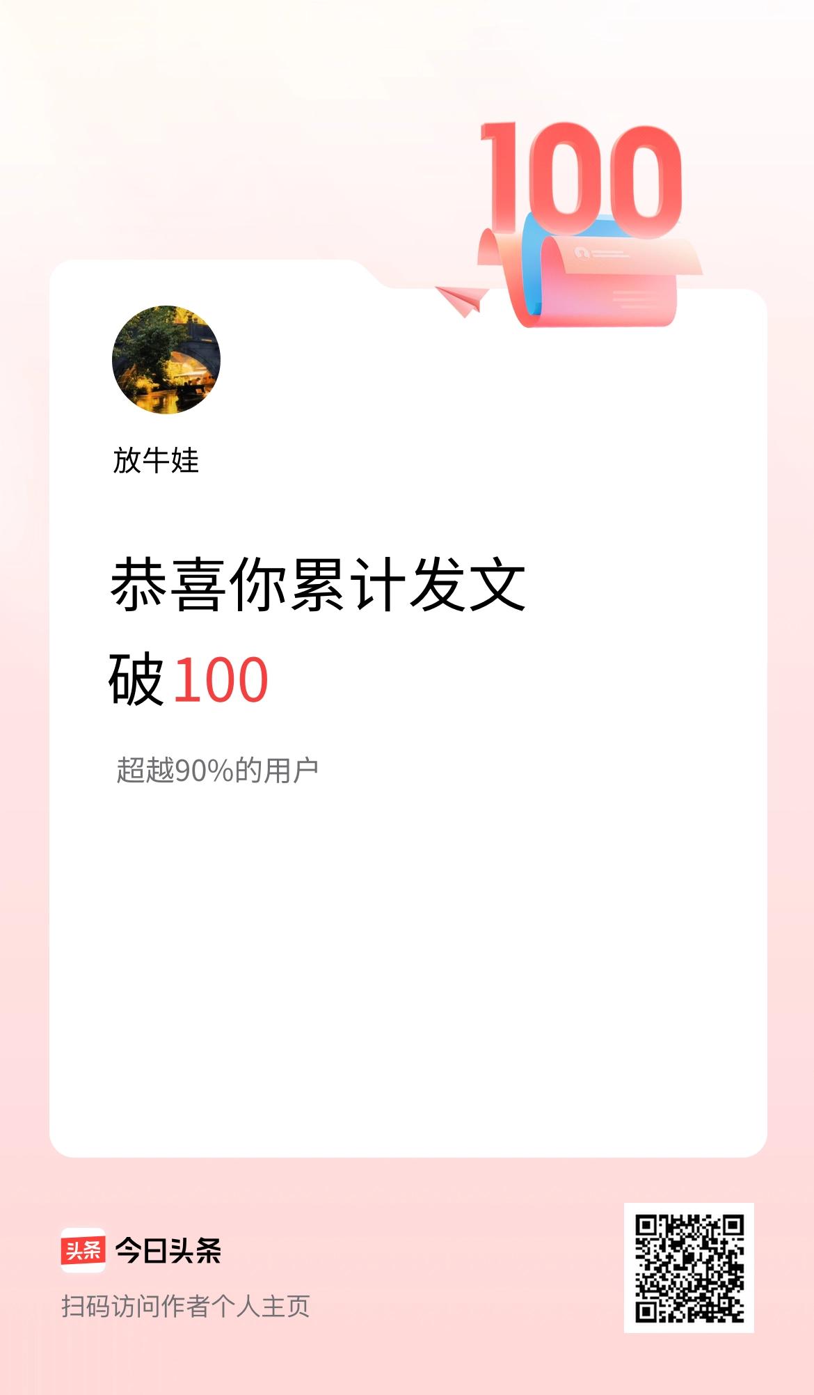 我在头条累计发布内容破100啦!