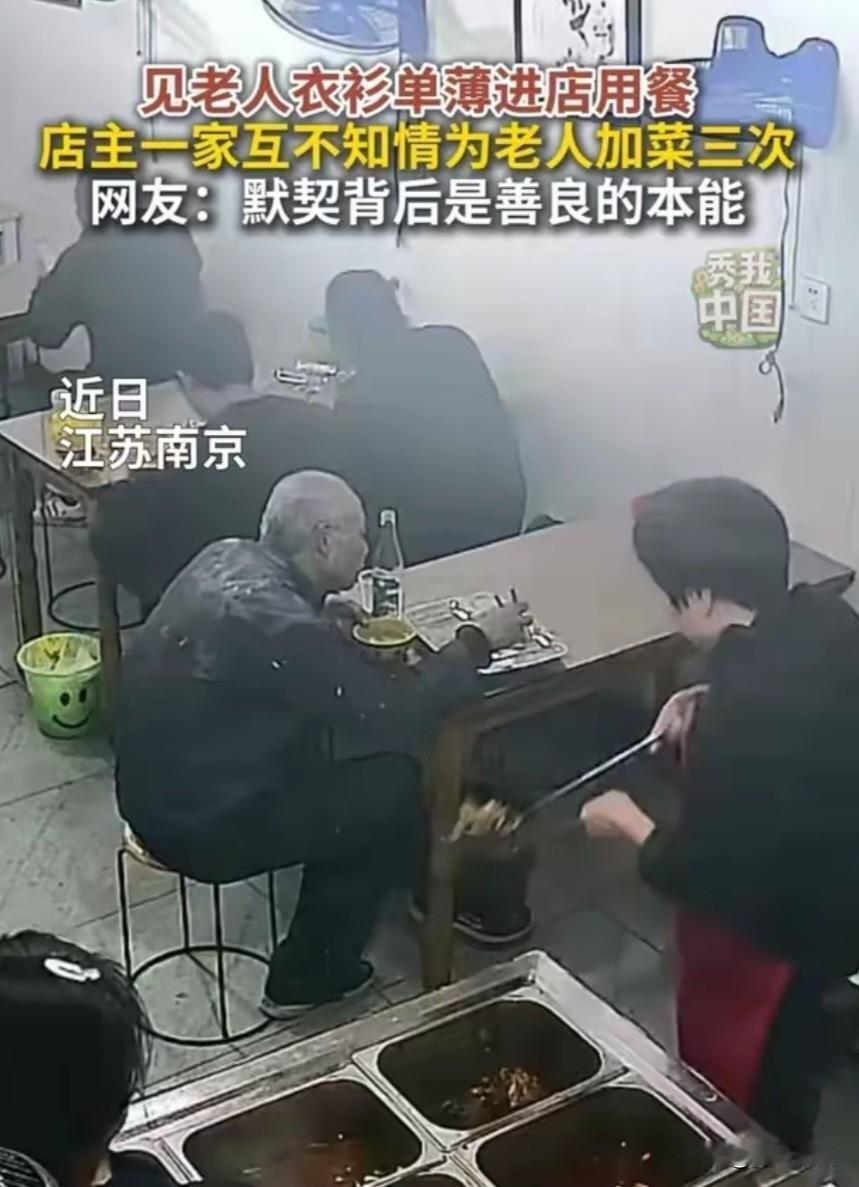 果然店主一家都是善良的人,不是一家人不进一家门;一位老人正在吃饭,老板娘看见老人穿着单薄,就多给他打了一点菜,说看见老人挺可怜的,所以加了菜,过来一会儿,老板也过来了,看见了老人,也给他加了菜;善良是会传染的。 这种善良在写在骨子里的,好的教养,会旺几代人。 有网友评价:加的不是菜,是温柔 这店主一家格局可以,生意兴隆