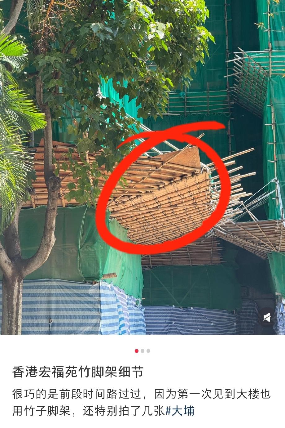 这次香港宏福苑失火的原因,竟然是因为这个比较复古的脚架。 有不少网友,纯粹就是偶然,因为对这种脚架比较好奇,意外拍下了火灾之前的样子。没想到后来就发生了后来这么大的火灾事故 说实话,我对建筑一窍不通。但对于这么发达繁华的城市,不知道为什么采用这种比较老旧的竹子来做脚架,尤其是这么高的楼,架起来真的很结实吗? 关键是这个材料竹子,这个非常容易燃烧,农村人都知道,只要有一点火,烧起来是很快的,就像引火一样。如果换成铁架子,是不是就可以避免这样的惨剧发生呢?大家怎么看为什么要用这种材料脚架?