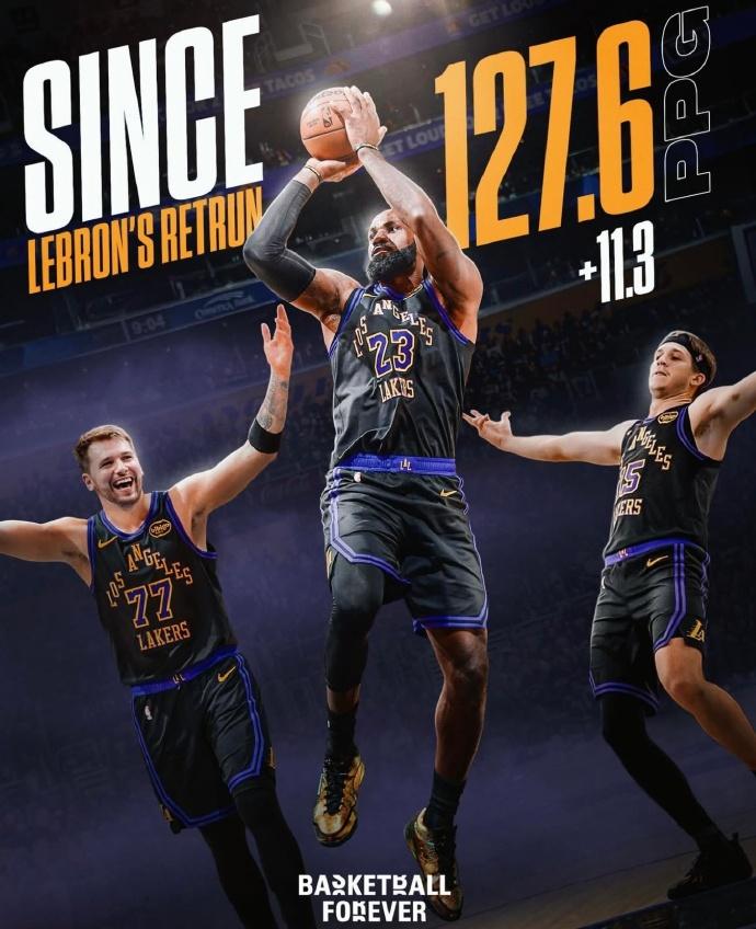 自詹姆斯回归以来: ——湖人场均得分:116.3分→127.6分(+11.3分) ——湖人战绩:3胜0负 ——进攻效率值联盟第2 ——净效率值联盟第7 詹姆斯目前的打法,是纯粹的湖人队第三人。 首发跟着东契奇和里夫斯,球权基本在东契奇手里,詹姆斯蹲在弱侧当投手,适时空切接球攻击篮筐。 到了轮换阶段,东契奇休息,詹姆斯和里夫斯搭档,里夫斯是持球核心,詹姆斯会相对拿到一些处理球的机会,在强侧背身2打2,或者在弧顶打高位挡拆,当里夫斯持续进攻的时候,他就会蹲在弱侧底角当投手。 从这几场比赛来看,詹姆斯对自己的定位很清楚,他的体能也没办法支撑大量的持球在手,上赛季已经放权了,本赛季放的更彻底一些,然后带来的好处就是,詹姆斯的防守上来了。 遇到小后卫还是被一步过,但对付4-5号位,詹姆斯完全能里去顶一顶,而他体能充沛的另一个象征,是能够在油漆区两侧完全快速移动的协防和补防了,打快船这一场球尤其明显。 这就是顶级球员的适应能力,回来打3场球,成了万金油球员了,且方方面面做的还不错,这么不劳心的打法,再干3年也没问题。