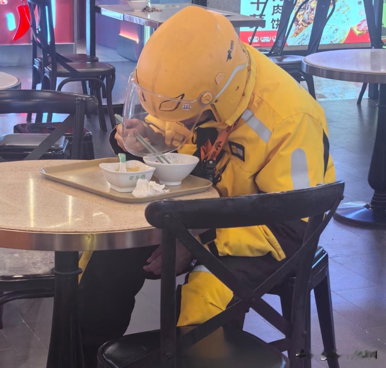 今天在商场里碰到一个美团外卖骑手,两点才开始吃饭,人家就点了一份鸡蛋糊和一碗米饭,生活哪有那么容易,让人心疼。