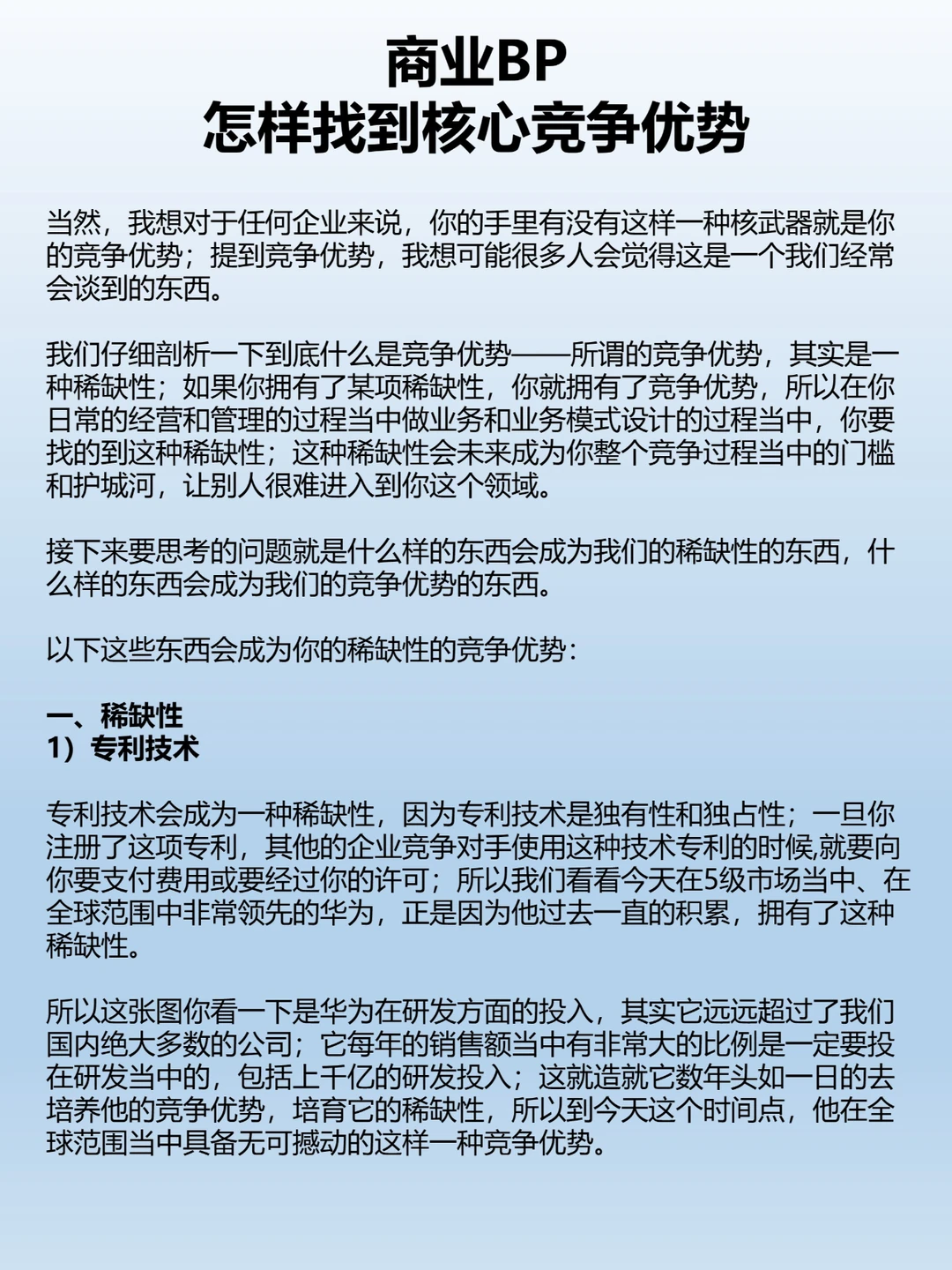 商业BP怎样找到核心竞争优势