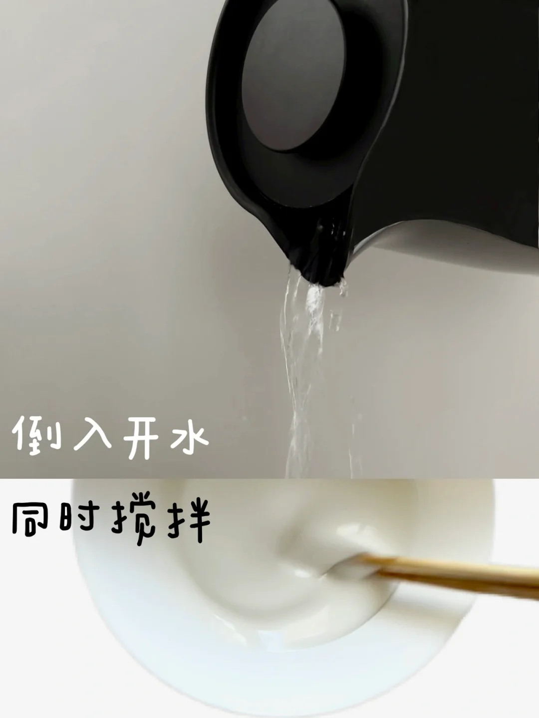 简易版 制作过程五分钟 手法与冲藕粉雷同 材料只需水和土豆淀粉 做凉粉 开水稍多一点 口感嫩 做凉糕 开水稍少一点 口感糯 冰粉和凉虾也能做 改天再战