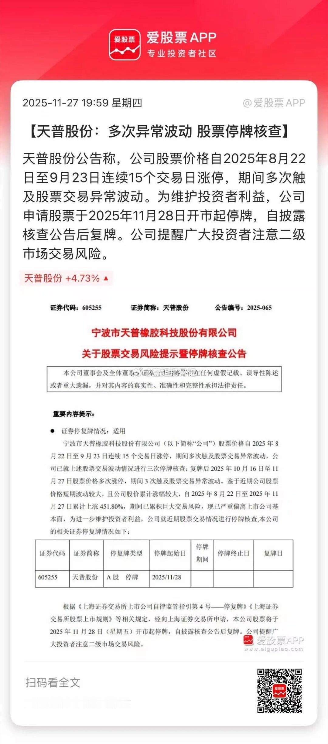 天普股份停牌二进宫了,9月底第一次停牌,出来2个半跌停。从110跌到最低85块,但一个多月过去了,从80多涨到最高154元,又几乎翻倍了!天普主要炒作借壳预期,实控人变更为中昊芯英。跟上纬新材一个逻辑,由于市值更小,所以资金不断抱团往上炒。实际上,上纬新材和天普股份的借壳概率均为零,因为都承诺36个月没有借壳计划。但A股不管这些,主要还是市场流动性宽裕,于是各种群魔乱舞!我们指数现在在慢牛,但A股的交易机制和市场氛围还没改过来,还是喜欢投机,这个土壤是根深蒂固的。