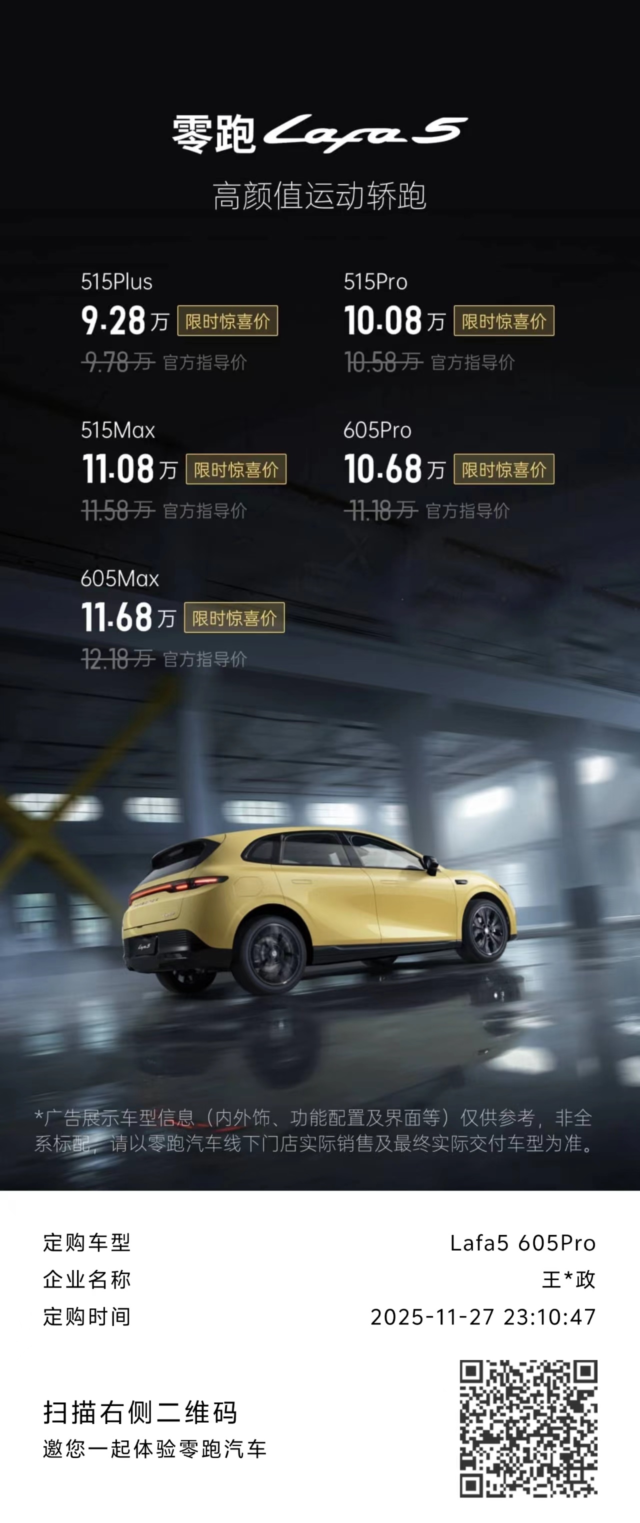 lafa5……研究了下,我还是选605pro吧……零跑lafa5