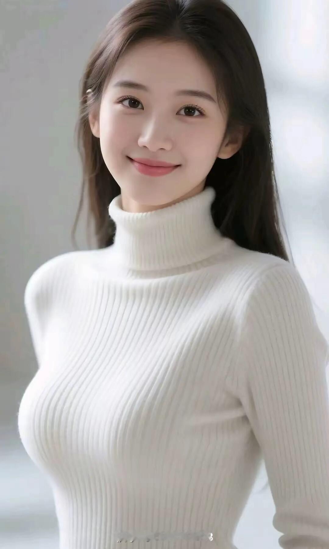 温柔甜美的白色高领毛衣,尽显冬日温暖与优雅。