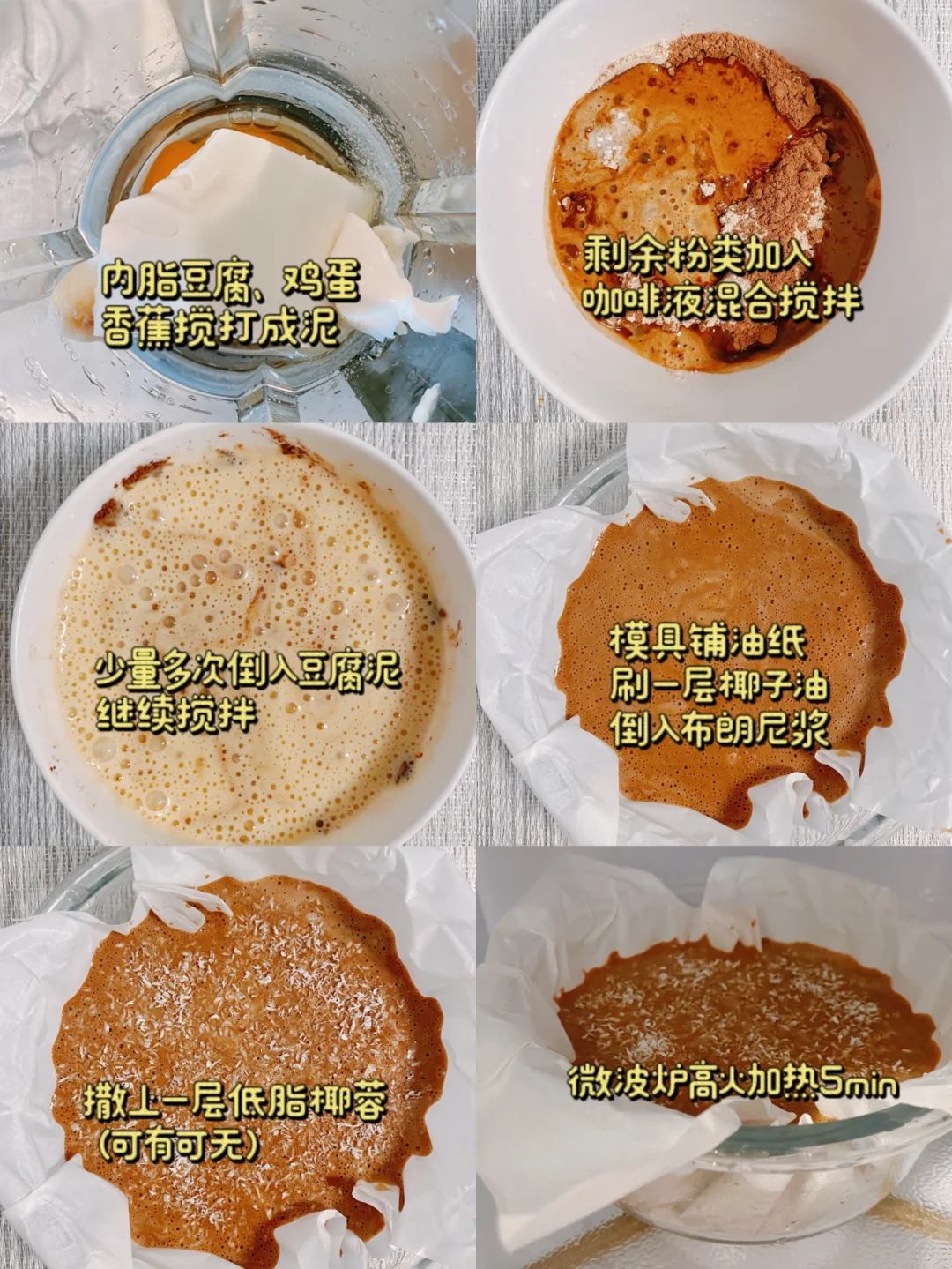 💕微波炉美食:可可豆腐布朗尼/157卡/份 高蛋白低碳水,无面粉免烤箱,老人小孩均可食用的低卡小蛋糕[萌萌哒R] ✨✨✨ 🍃食材: 内脂豆腐150g 香蕉40g(充当糖,不喜欢可换成代糖;不减脂的直接放糖;也可放一勺蜂蜜) 燕麦纤维20g(代替面粉,可用全麦面粉代替;不减脂可直接用面粉) 生可可粉5g(生可可粉有很好的抗氧化作用,若觉得苦,可放3g左右) 咖啡源液25ml(不喜咖啡可用牛奶代替,仅是为了更好的搅拌,咖啡和可可颜色相近故用咖啡) 泡打粉2g(是不是松软全看它了[偷笑R]) ✨✨✨ 详细🔎步骤翻图5⃣️ 🌈:微波炉加热时,咖啡和可可的香味会让你上头!偷偷教个小妙招,豆腐搅拌时可加入一丢丢盐去去腥,口感更佳[害羞R] ✨✨✨ 一份才157卡,可切四块,一块才39卡,早餐来两块,超赞!健康减脂从早餐开始[偷笑R] 今天也是吃好喝好的一天 减脂那么辛苦,可别再委屈自己的胃了💕 ✨✨✨ 【碎碎念】 近日打算试试生酮饮食,需要安排些嘛🤔